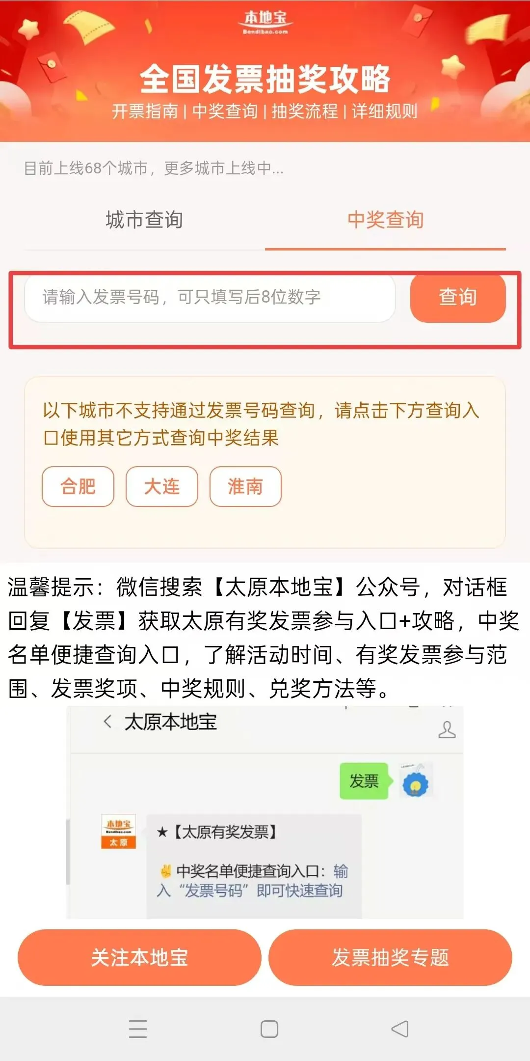 ✅新版:整合为一个入口,全国通用。输入发票号码,全国的中奖发票查询都可以在这里搞定(部分城市不支持)