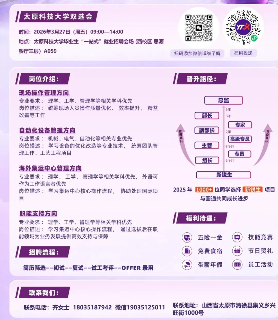 春招正当时,梦想在召唤!圆通速递“新锐生”招聘正式登陆太原科技大学,诚邀有志青年加入,与我们一同扬帆启航,书写精彩未来!