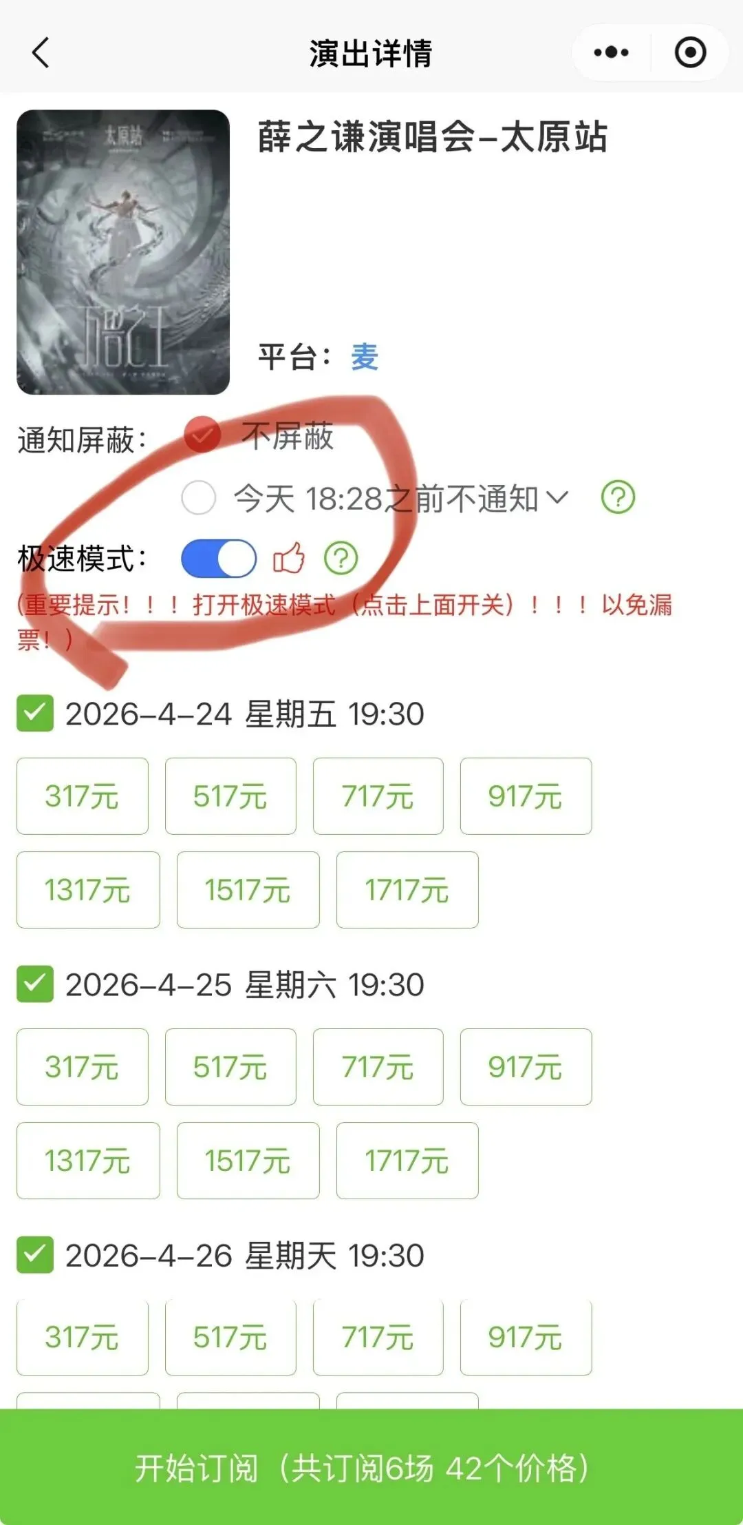 !!!别等收到通知后再打开软件,那么就会比人慢几秒,这种超热门演出就是争分夺秒的
