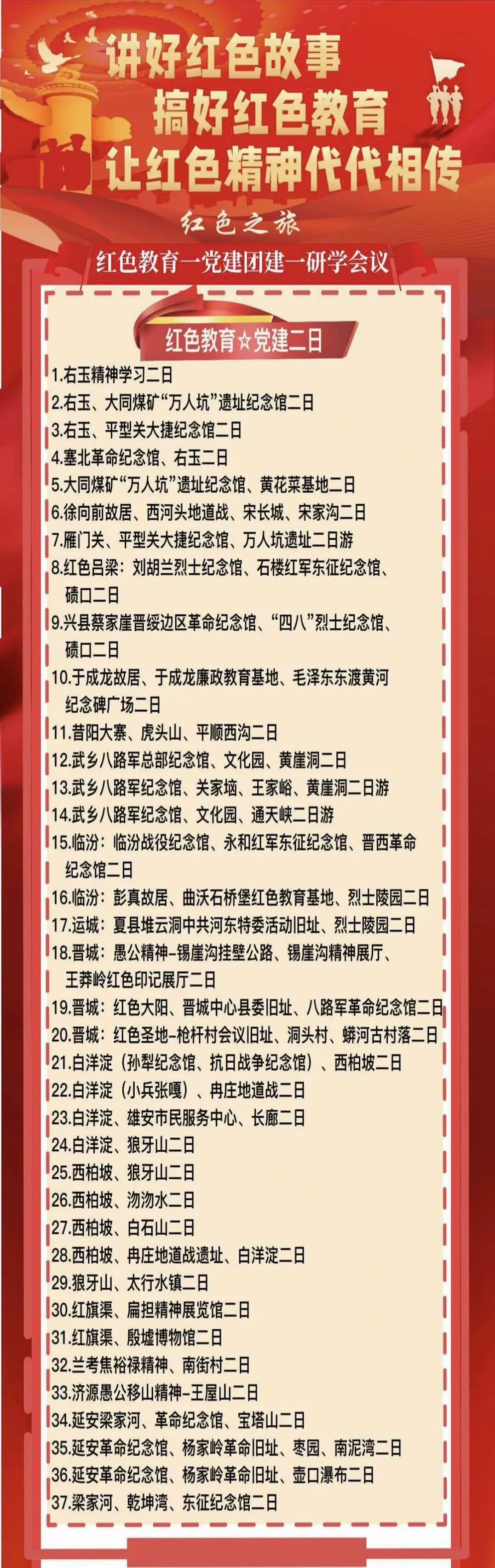 二日研学:右玉精神学习、红色吕梁、武乡八路军总部、延安革命旧址等37条组合线路,深度沉浸式研学