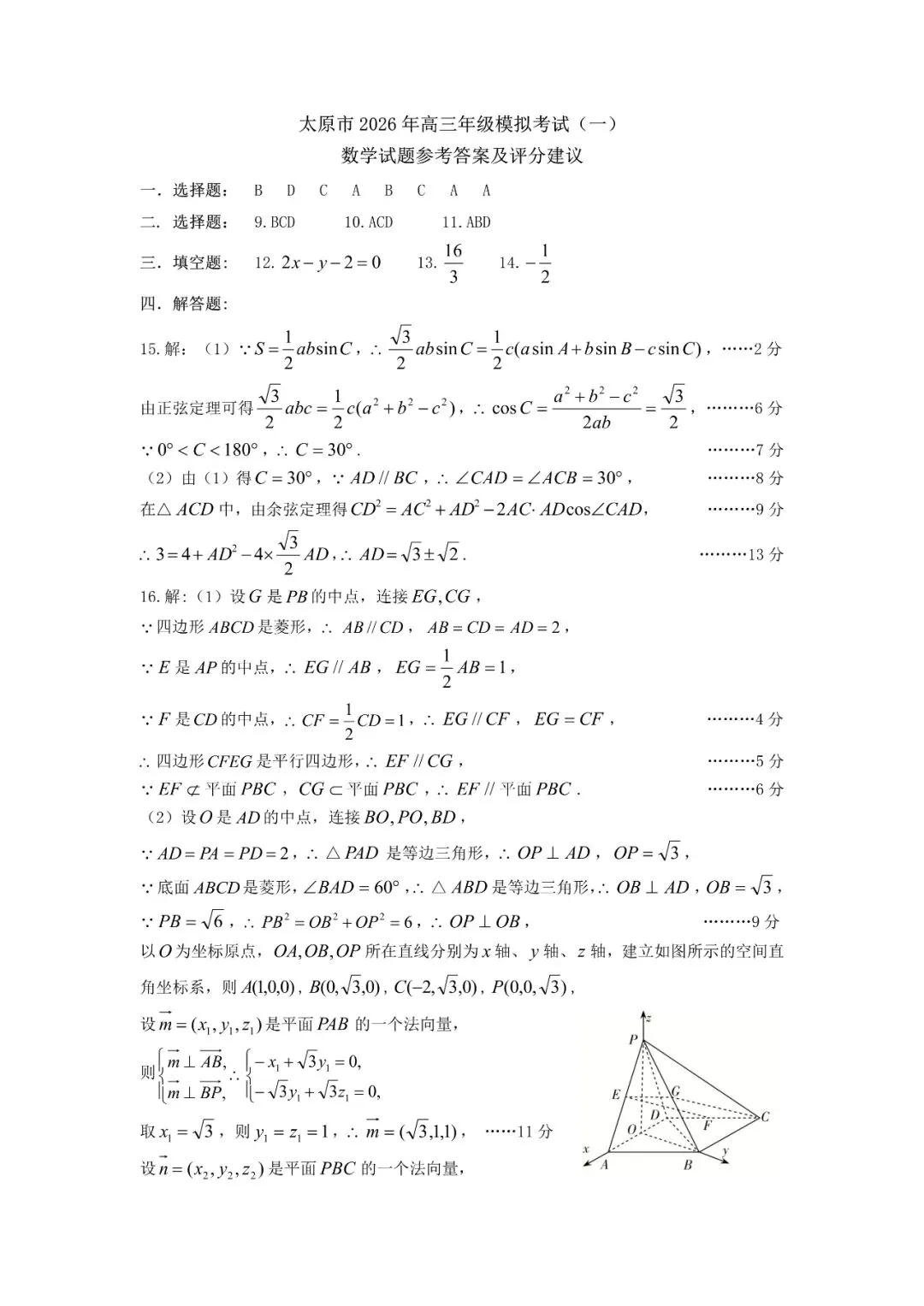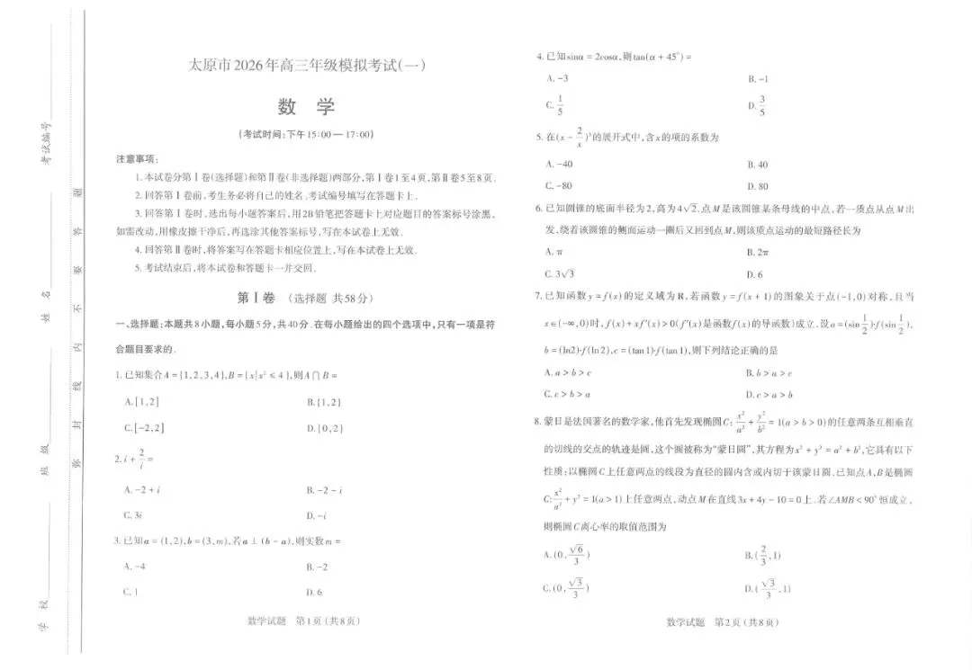 太原一模试题及详细答案(考试时间20260325)
