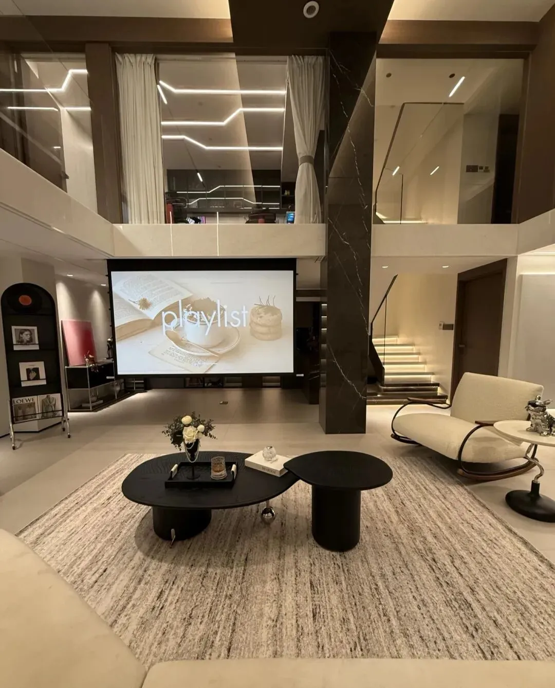 客厅设计:简洁大气的线条,搭配米白色与黑色的经典搭配,营造出宽敞明亮的视觉空间。