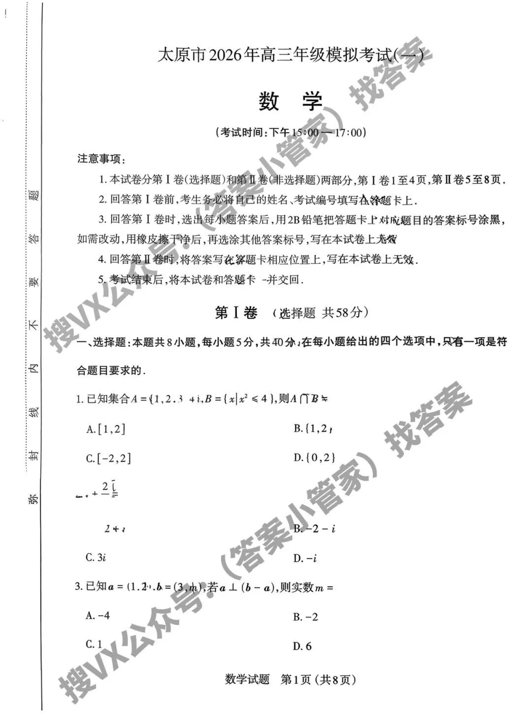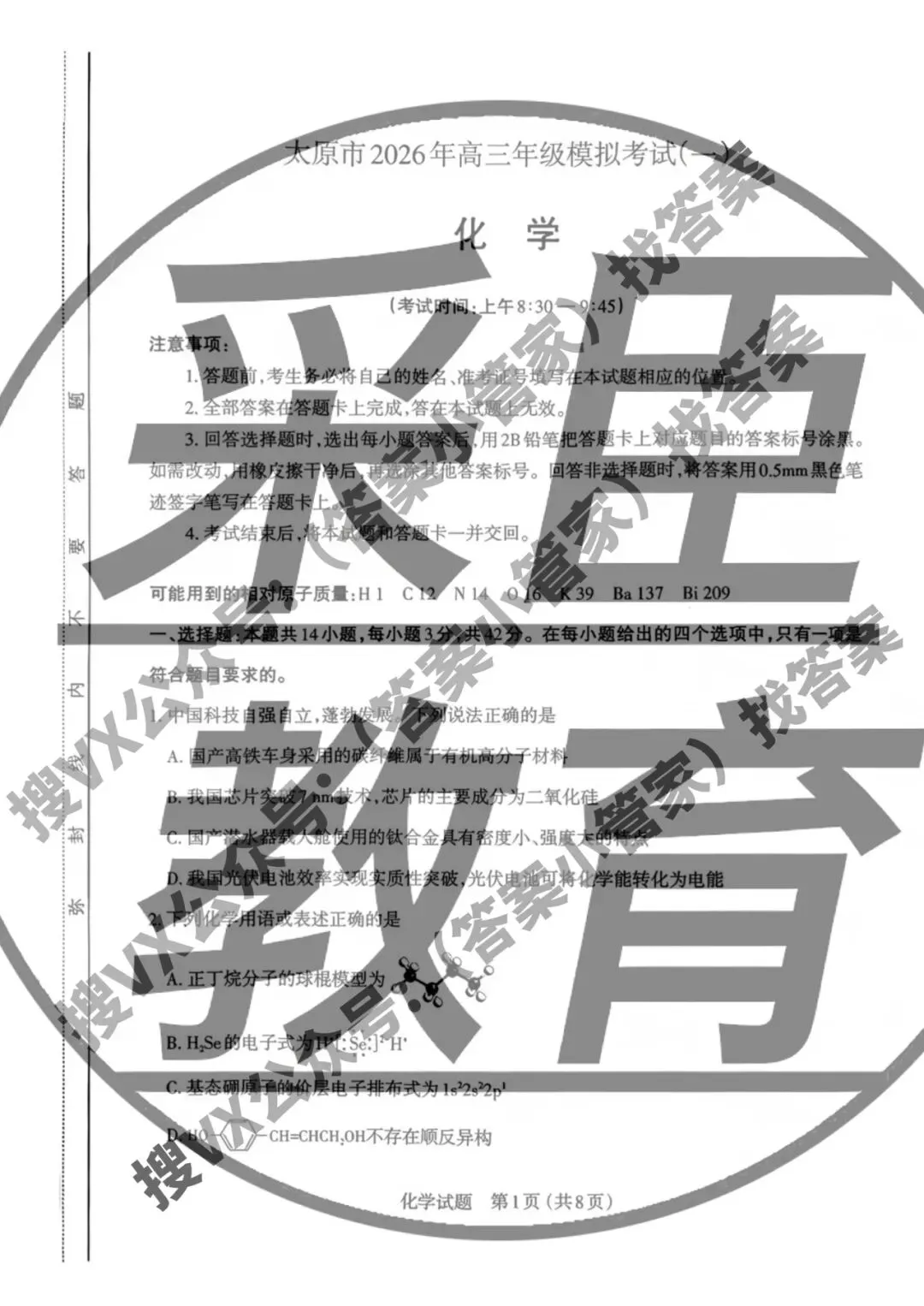 >3.25[太原一模]山西省太原市2026年高三年级模拟考试(一)各科试题及答案