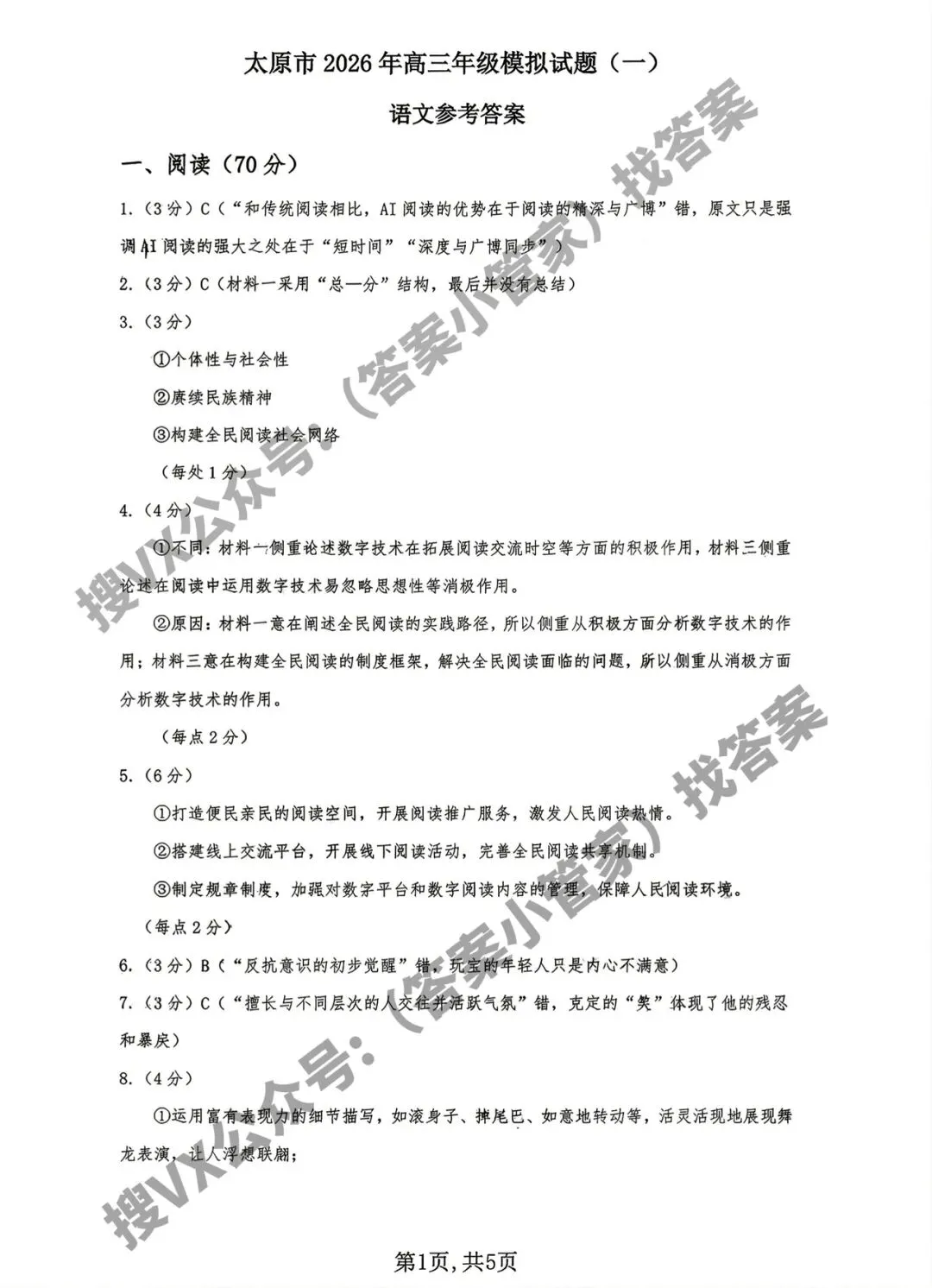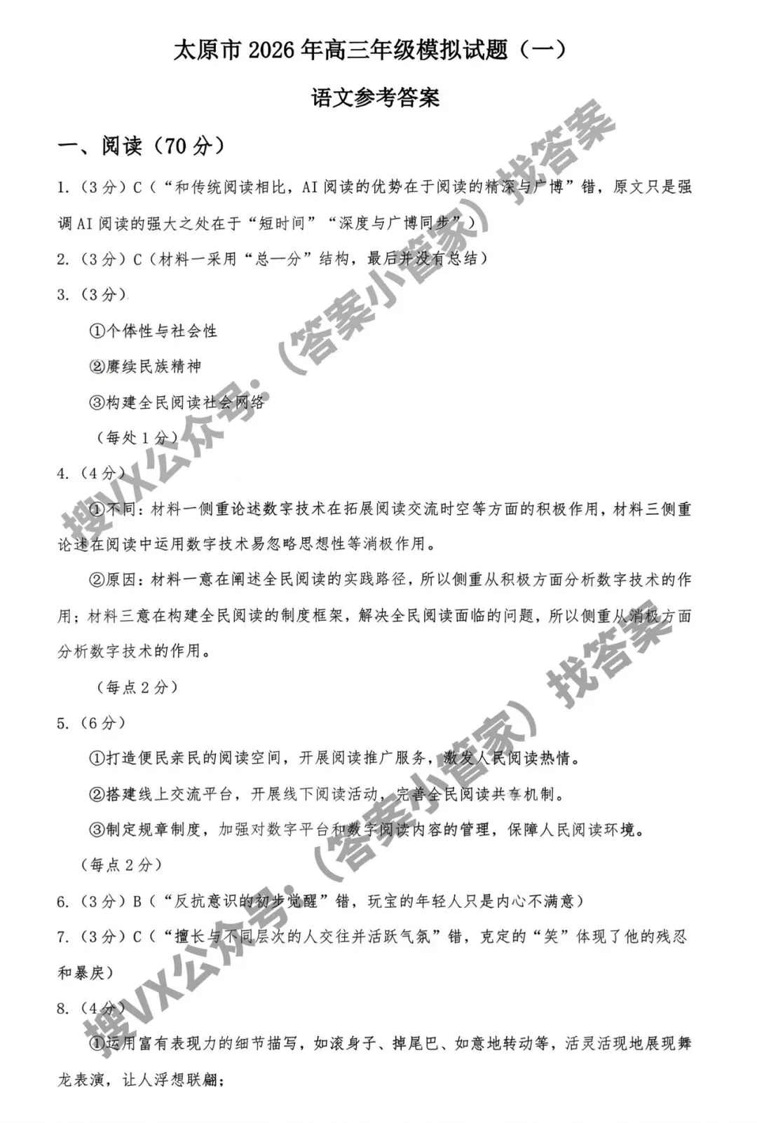 试题答案 | 太原市一模试题答案领取(语/数/物/历/英语)