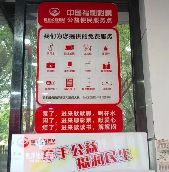 福彩爱心驿站面向户外劳动者、临时遇困人员、老年群体等重点对象,从满足人们“喝口水、充个电、歇个脚”这些细微需求入手,免费提供热水、手机充电、临时休息场所和应急补给等贴心服务,让每一位走进驿站的群众都能感受到福彩的温暖与担当。