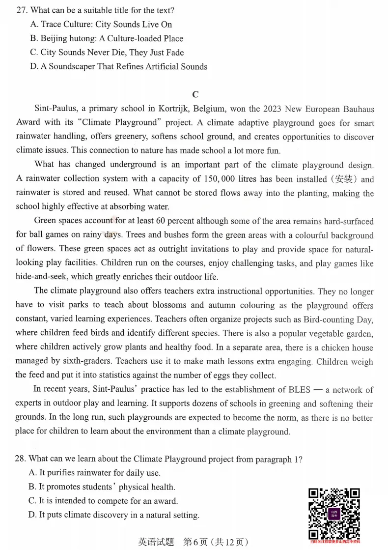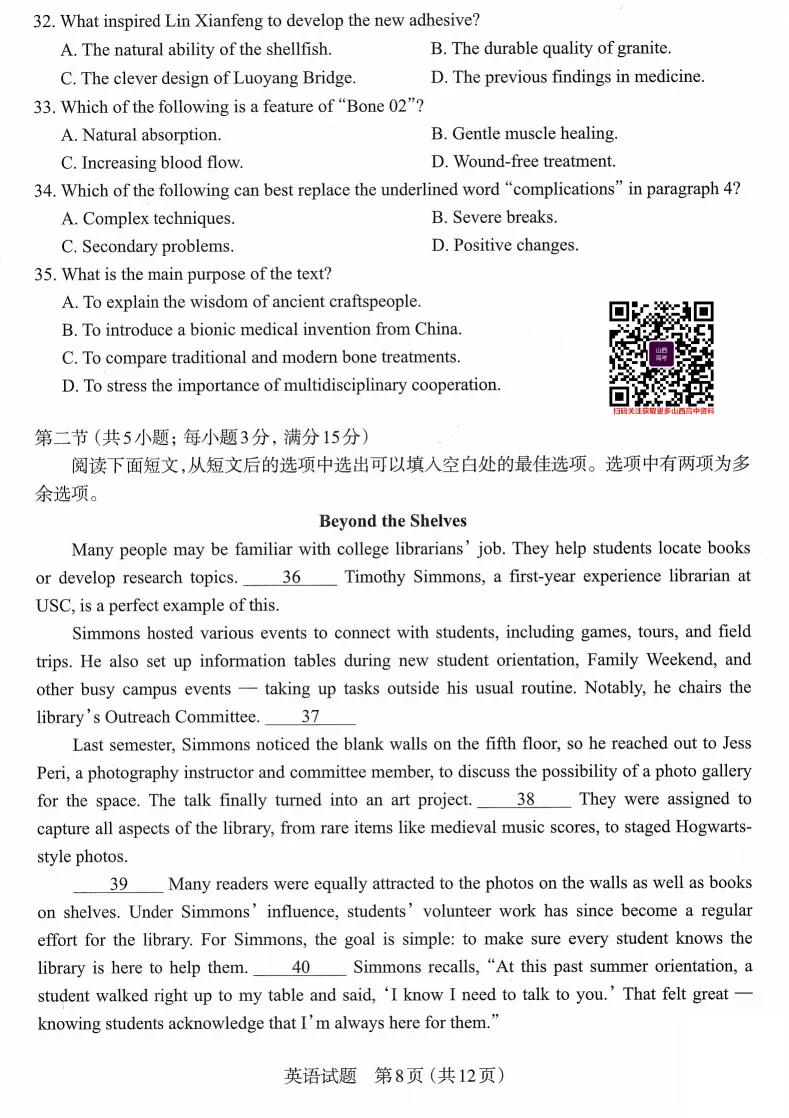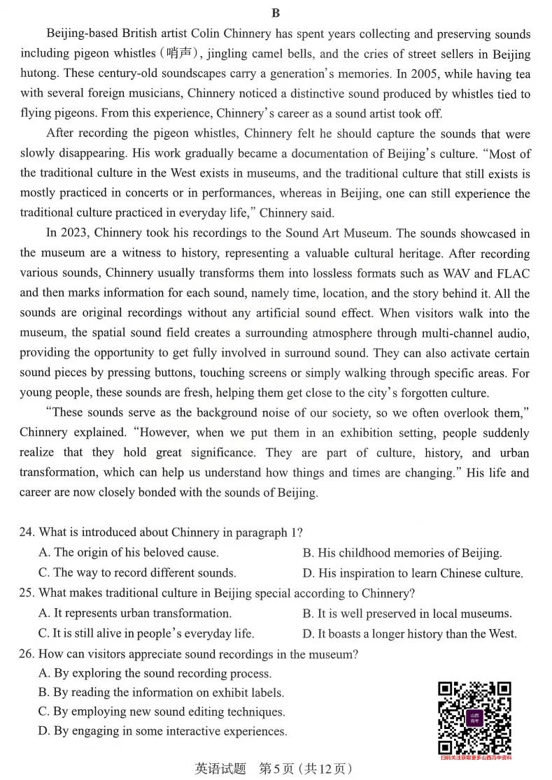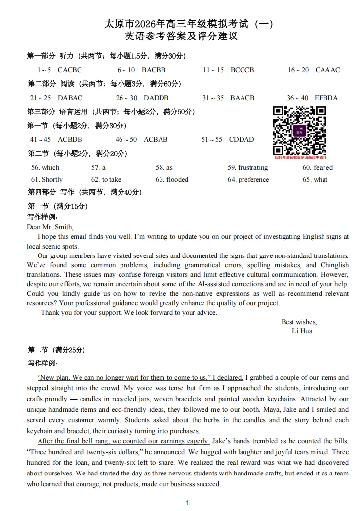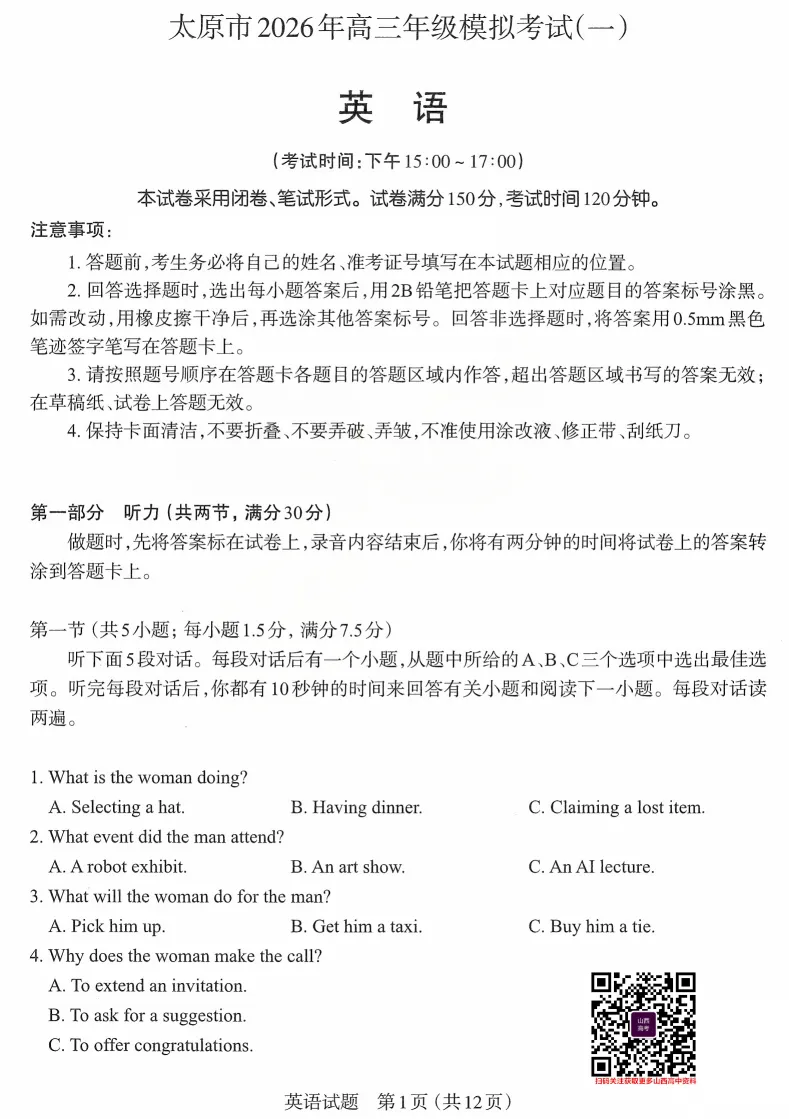 2026年太原高考一模英语试题及答案
