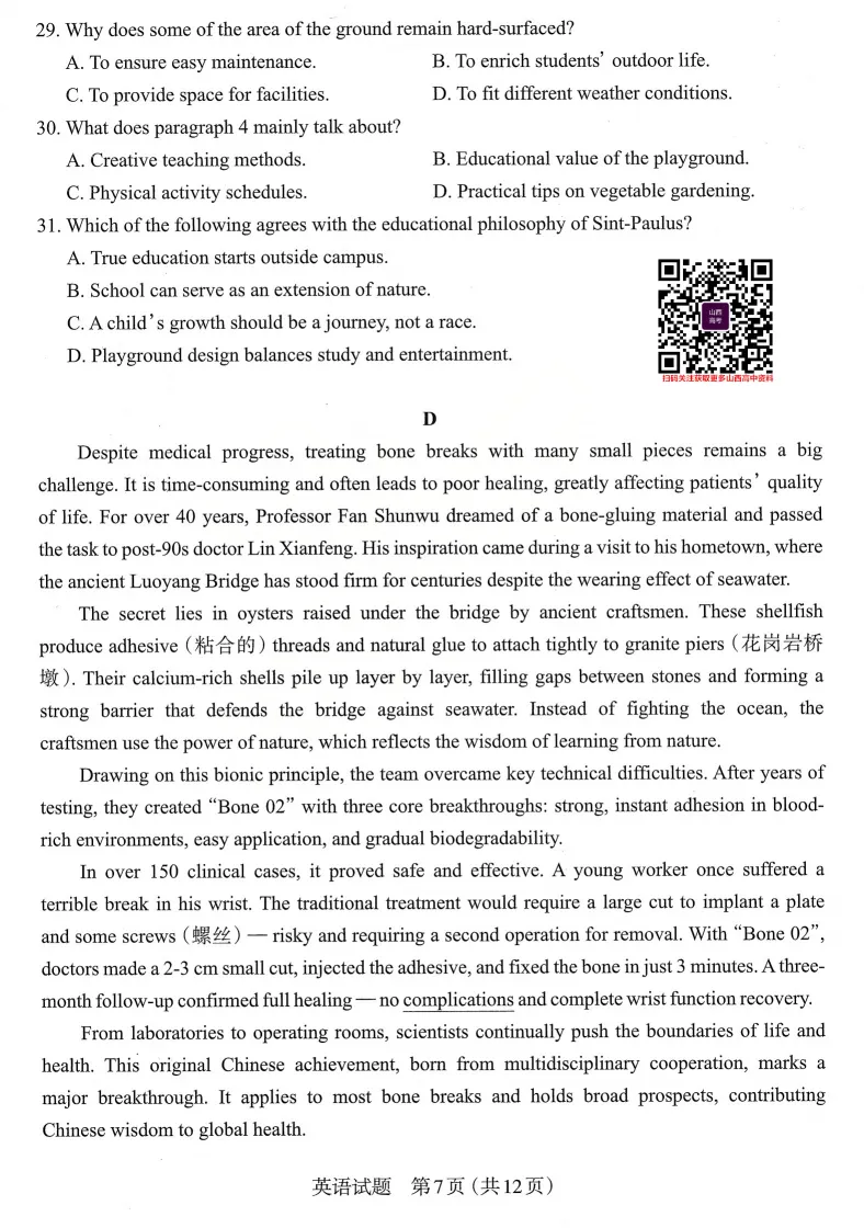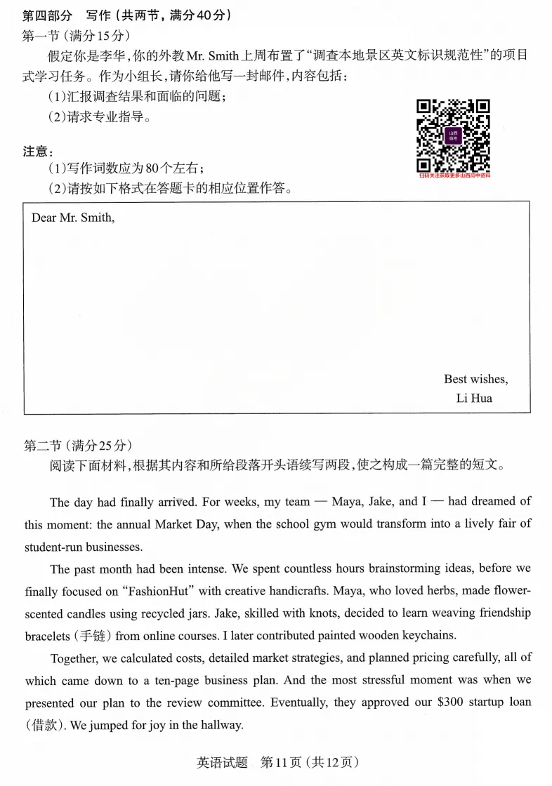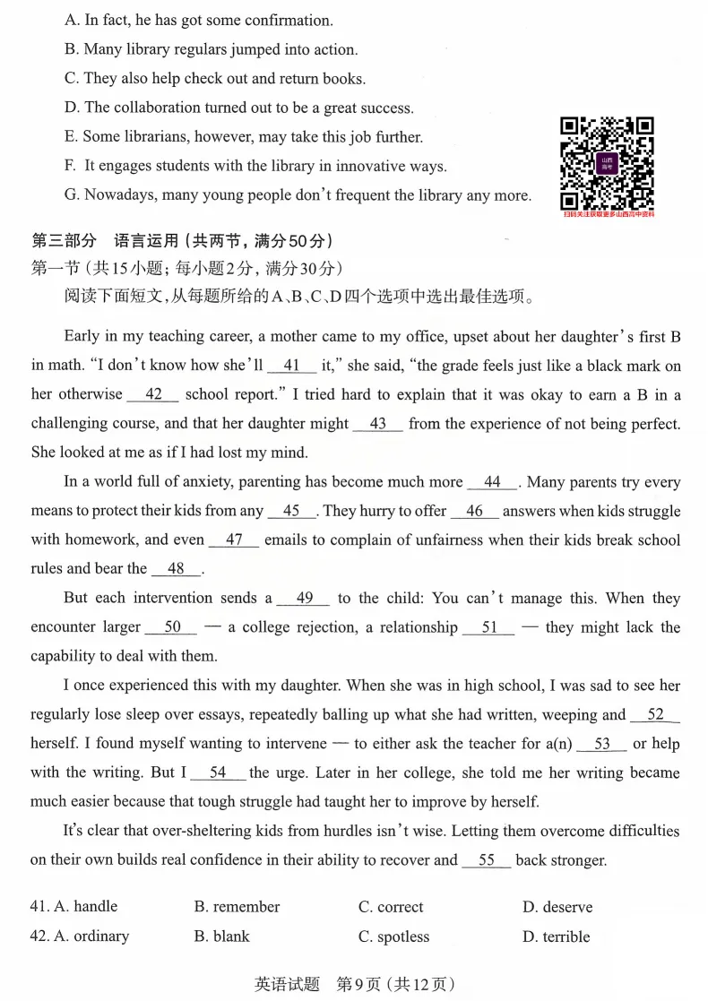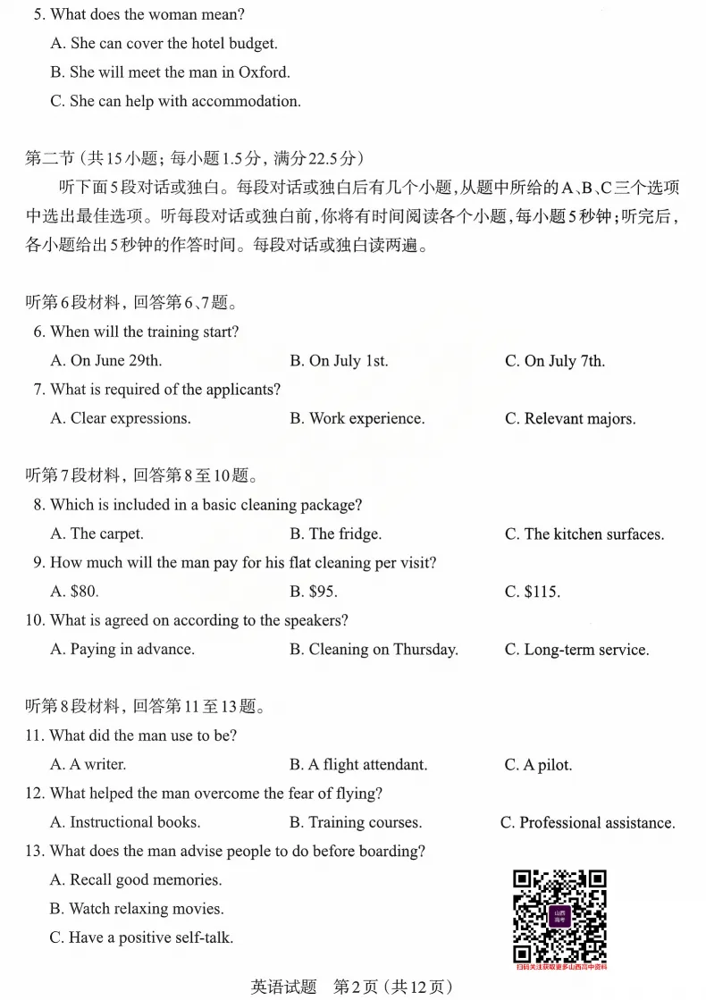 2026年太原高考一模英语试题及答案