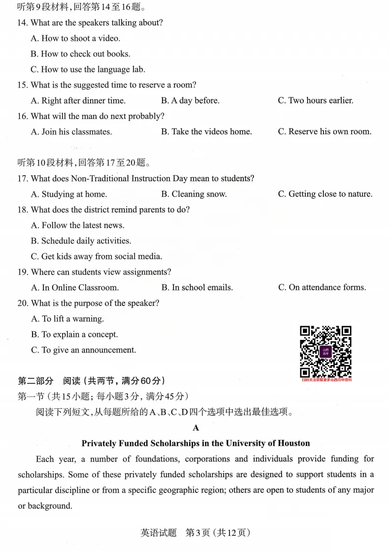 2022太原高考三模理综、文综、英语试题更新!附电子打印版