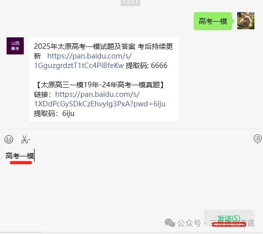 2、分别发消息“高考一模”“高考二模”“高考三模”