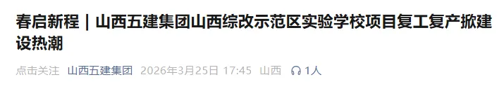 作为山西五建集团深耕教育工程建设的重要项目,山西综改示范区实验学校项目的稳步推进,是集团公司践行国企担当、助力地方教育配套升级的生动实践。未来,集团公司将继续秉持匠心品质,以实干笃行推进各项目建设,以高质量建设成果助力地方发展,书写企业高质量发展新篇章。