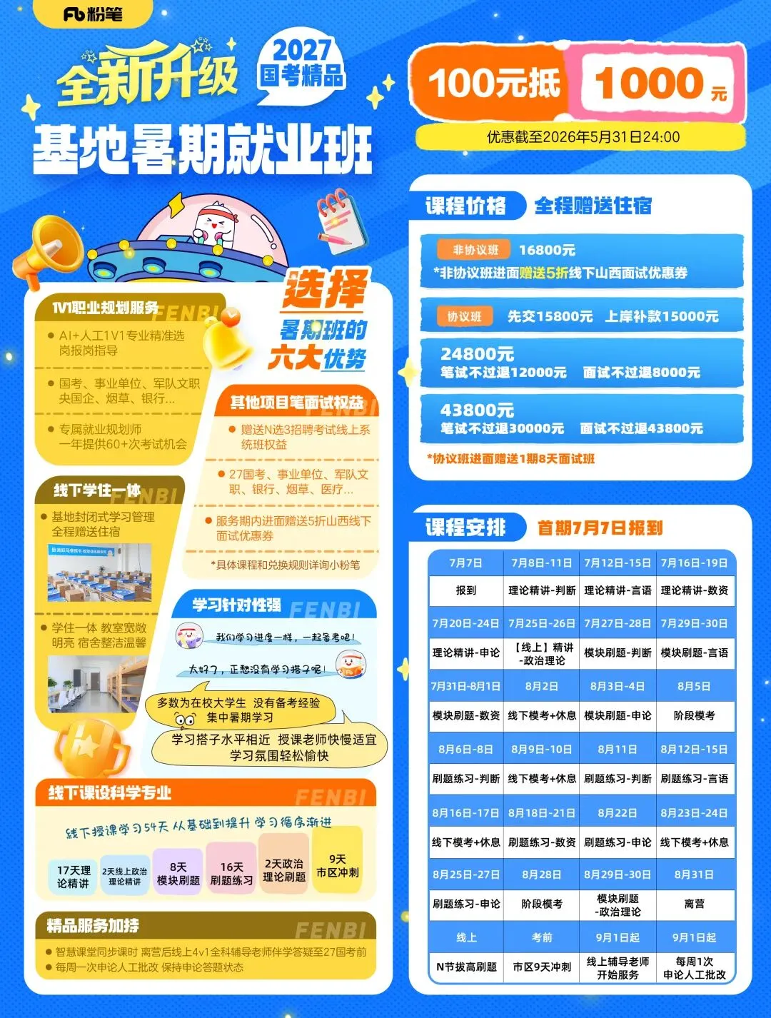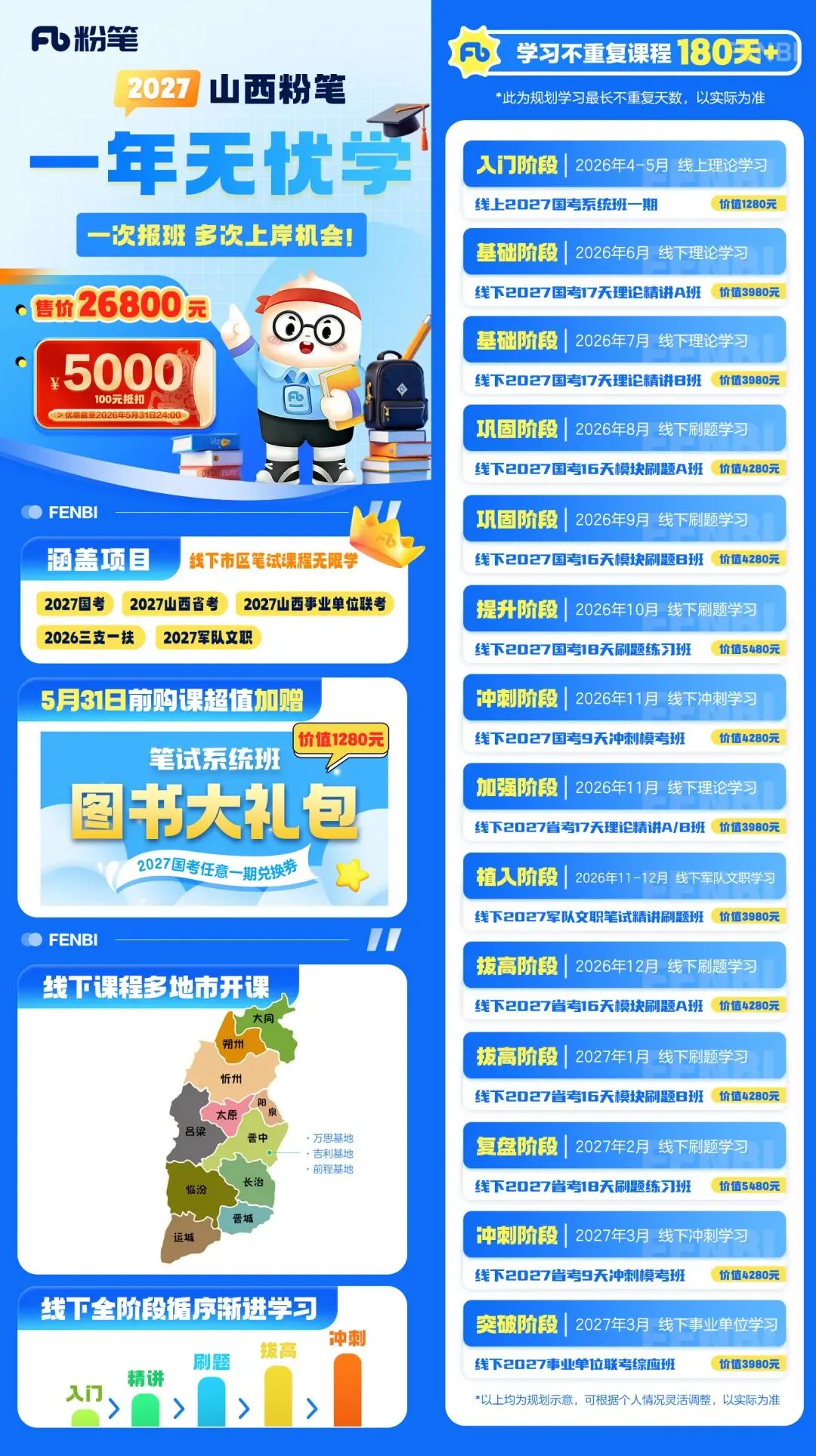 🔎27山西粉笔【一年无忧学】✅一次报班 多次机会