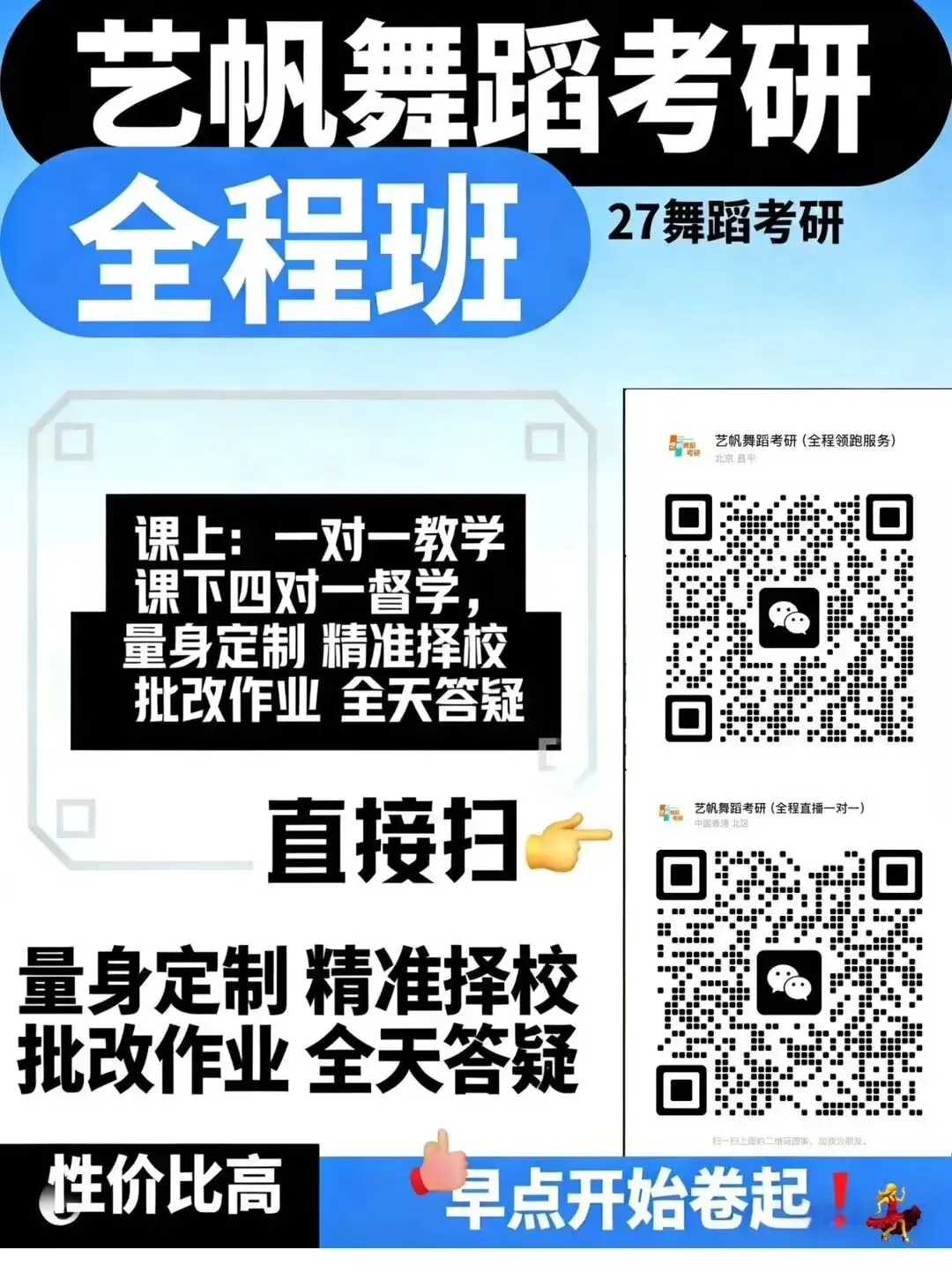 聚焦舞蹈考研备考痛点,艺帆始终以「针对性培养」为核心理念——精准定位院校报考优势,全面解析专业目录构成,量身定制科学课程体系,为学子绘制清晰备考蓝图。无论你是院校探索阶段的备考萌新,还是亟需提升应试能力的进阶学员,艺帆院校定向课程均可提供模块化拆解+阶梯式强化的定制备考方案。