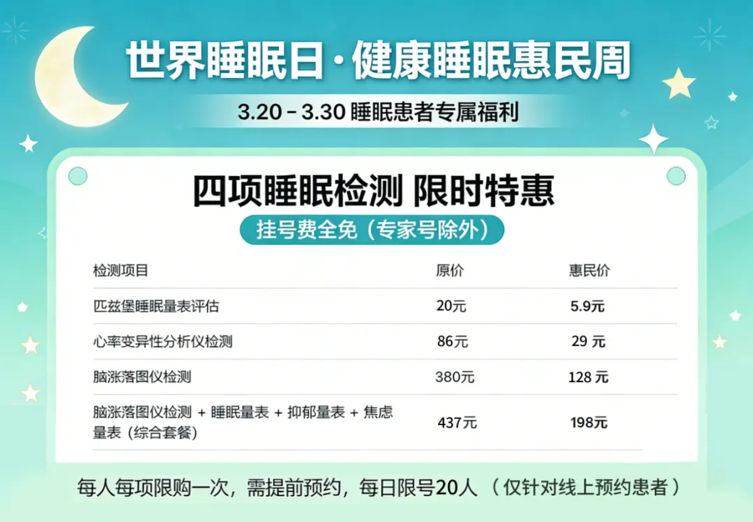 在3 月 21 日世界睡眠日到来之际,太原安定医院特别推出「健康睡眠惠民周」活动,用专业检测和实在福利,帮你找回安稳睡眠。