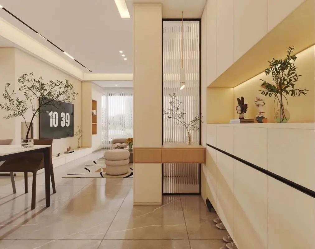宋式美学讲究“简、雅、素、净”。它不追求视觉的冲击,而重在意境的营造。在肖邦家居最新打造的晋源区大平层案例中,设计师摒弃了复杂的吊顶和背景墙,转而使用大面积的留白墙面,搭配深色胡桃木格栅,地面通铺温润的柔光砖。空间中没有一件多余的装饰品,却处处透着“雨过天青云破处”的淡雅色泽。业主入住后感叹:“以前觉得家里要满才显富,现在才发现,空灵才是真奢侈。”