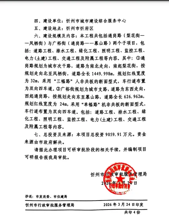 >配套太原科技大学忻州校区建设,城区拟新建道路建议书批复