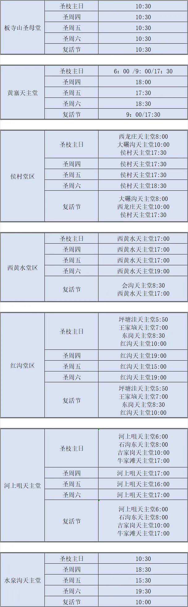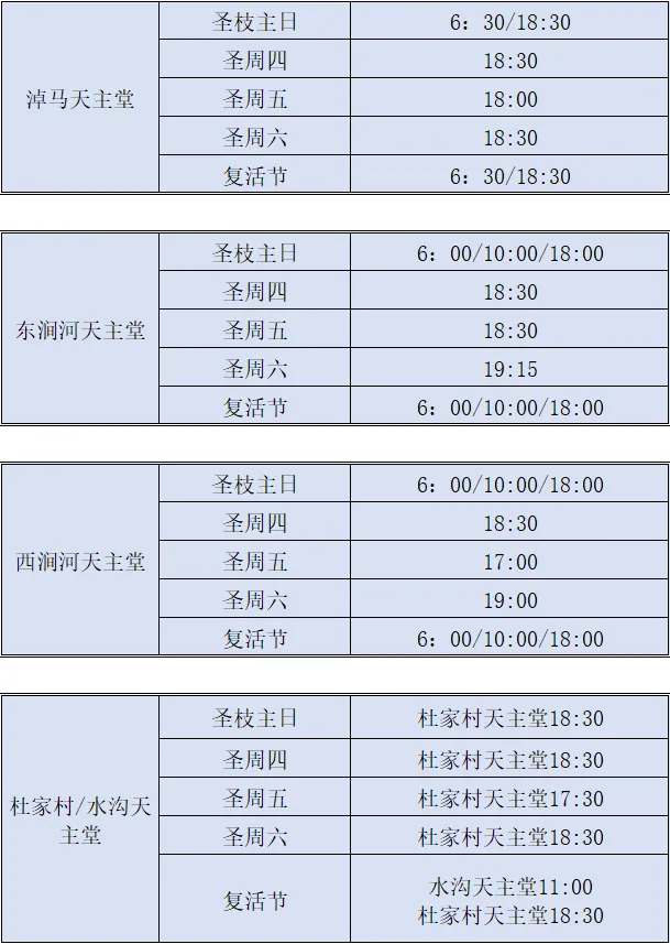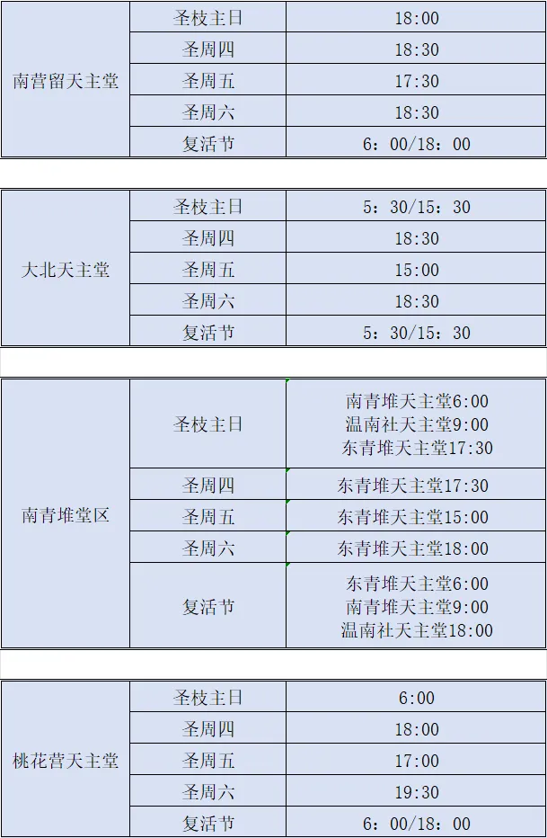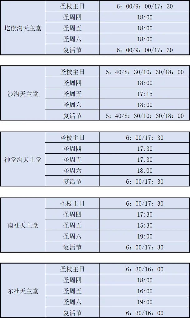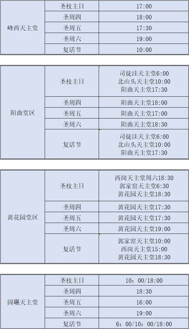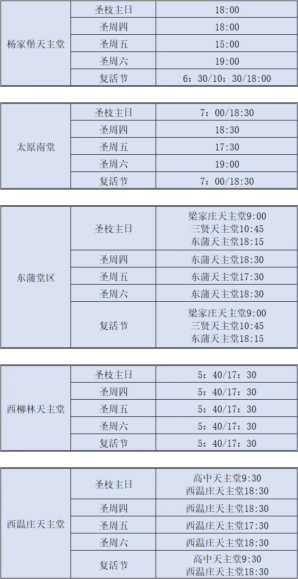【礼仪公告】太原教区2026年圣周及复活节部分堂区、堂口礼仪时间安排