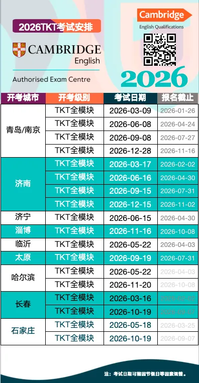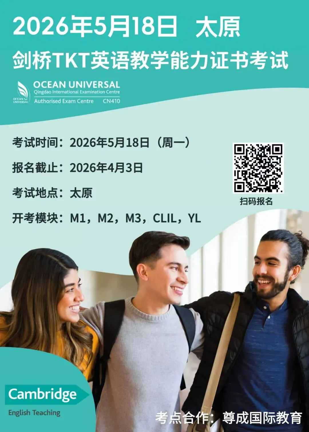 不用再为TKT熬夜苦读,不用再担心走弯路浪费时间!《TKT考点精讲》线上课程帮你精准抓考点、高效练技巧、轻松拿证书。现在报名,还能解锁专属备考资料包,跟着专业老师的节奏,一次通关TKT,让证书成为职场加分的硬实力!
