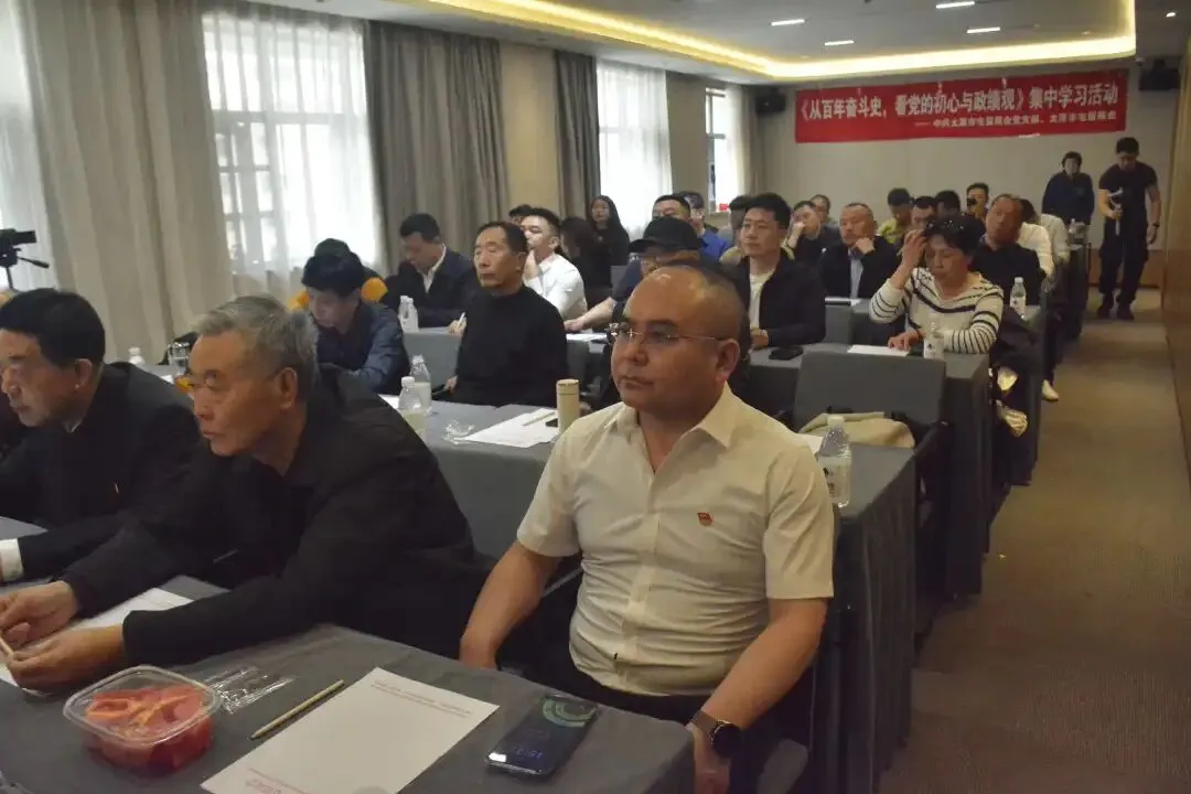 为深入学习贯彻习近平新时代中国特色社会主义思想,深刻把握正确政绩观内涵实质,强化党建引领商会高质量发展,中共太原市屯留商会党支部、太原市屯留商会联合举办专题集中学习活动,特邀韦川东教授作《从百年奋斗史,看党的初心与政绩观》主题授课。屯留籍在并老领导,太原市屯留商会党支部书记张毅,会长徐斌,秘书长万建宏,常务副会长郝长兴、陈海江、崔旭东、郭栾、王苗、左志军,副秘书长王晓林,理事马可健、徐双、徐晚红,会员贾佳林、陈志斌、赵勇、张俊海、李健、刘一凡等商会党员、会员代表齐聚一堂,以史为鉴、以学铸魂,共悟初心使命、共践实干担当。