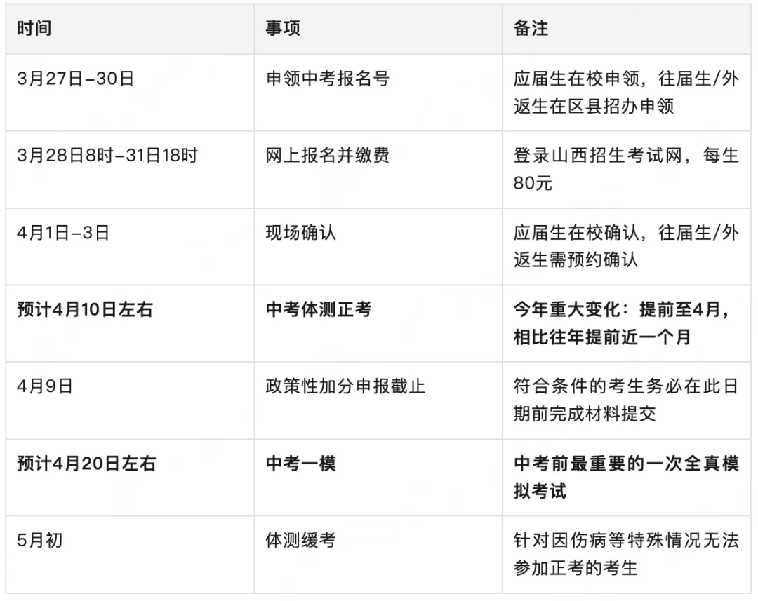 2026年太原中考关键时间节点高度密集,备考节奏紧迫。