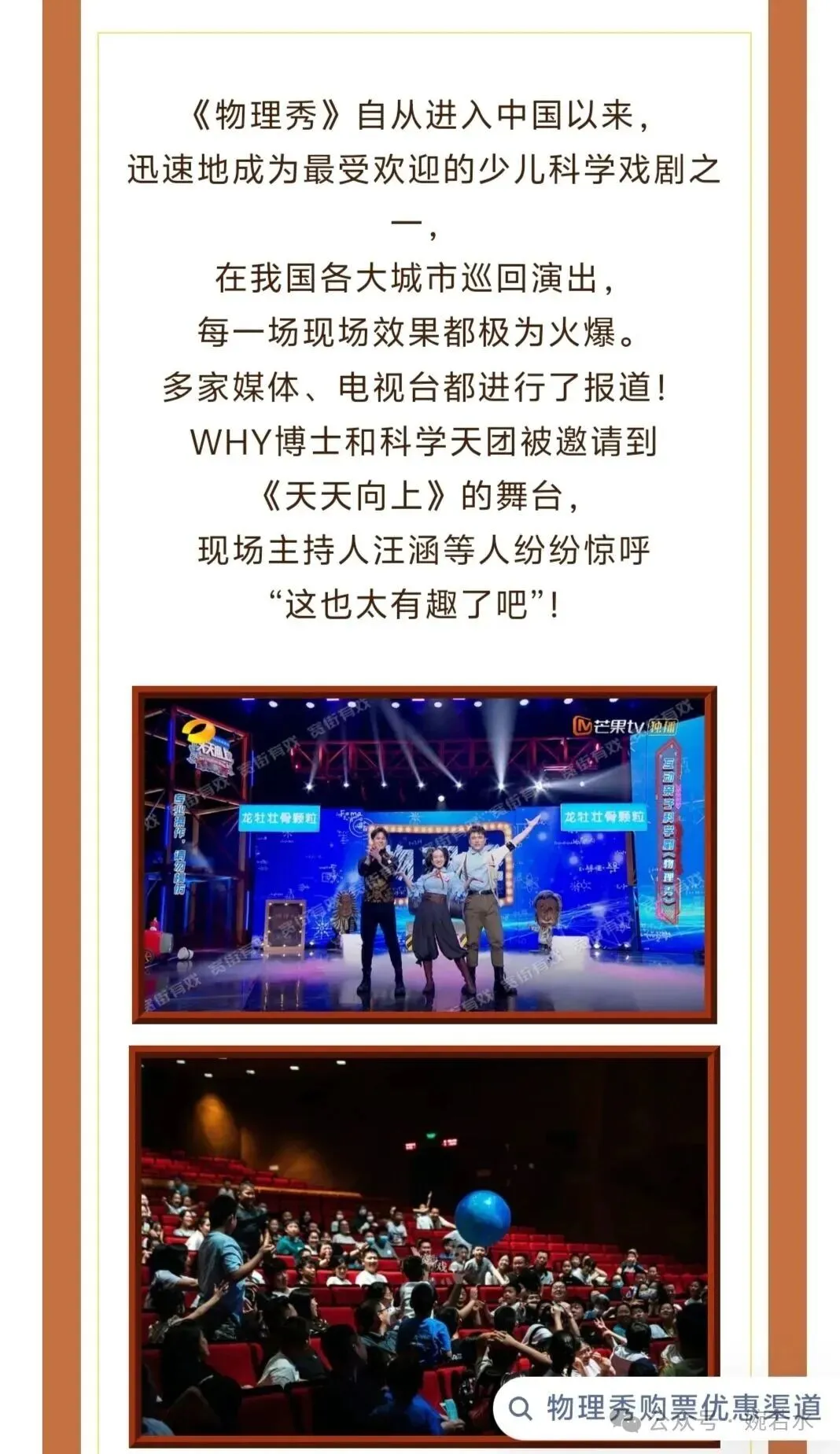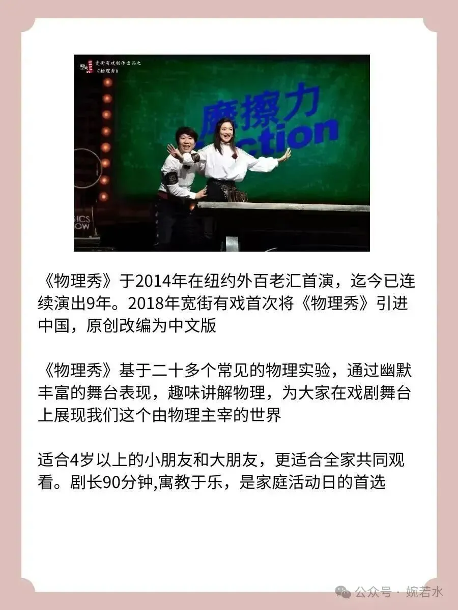 最后给大家推荐个儿童剧,虽然离演出时间还有些日子,但喜欢物理的家庭可以早点锁定前排位置,增加舞台互动机会: