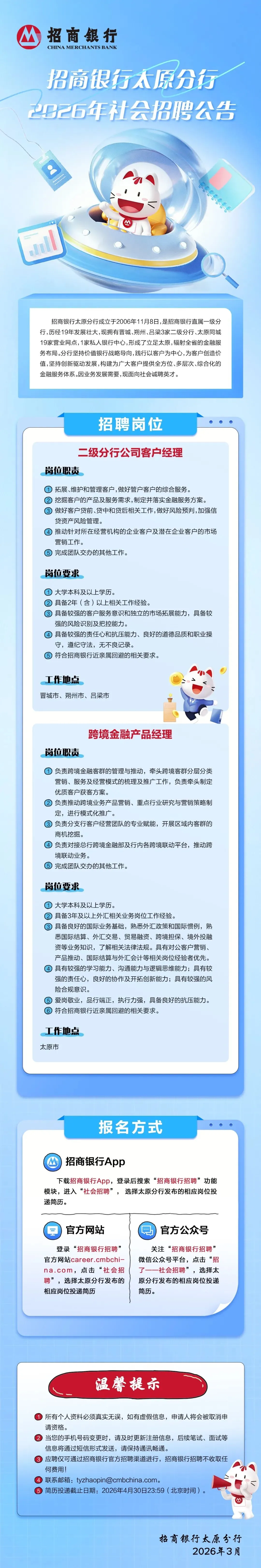 招商银行太原分行2026年社会招聘公告