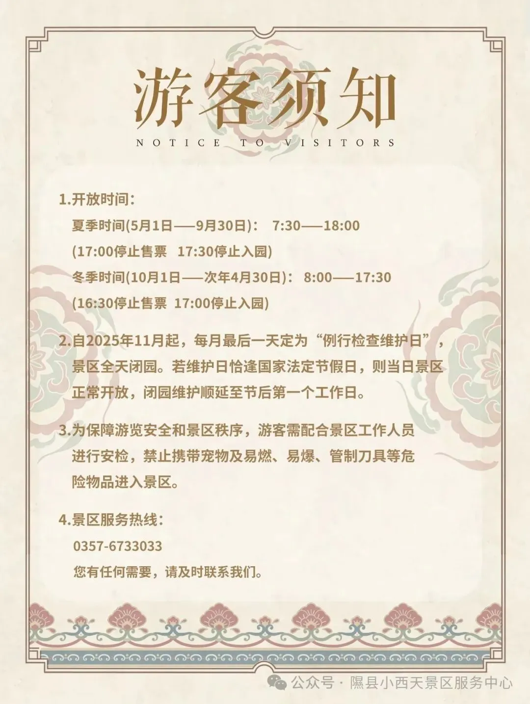 尊敬的游客朋友们: