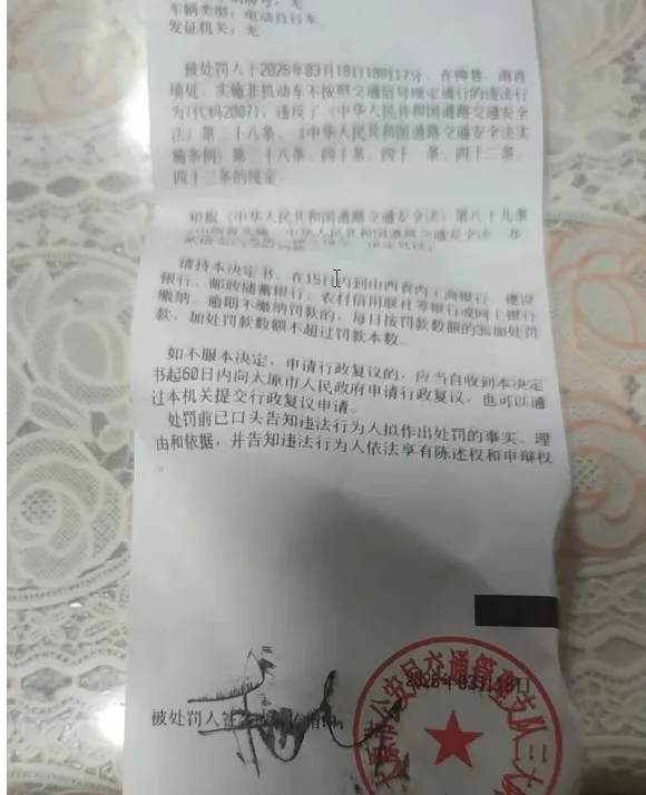 从法律层面来讲,骑电动车闯红灯,违反了《中华人民共和国道路交通安全法》相关规定,行人、非机动车驾驶人违反道路通行规定,可处警告或5元以上50元以下罚款,太原罚款20元,是依法依规处罚。交通法规不是束缚,而是保护每一个出行者的生命线,红灯停下,是守法,更是守护自己和他人的平安。