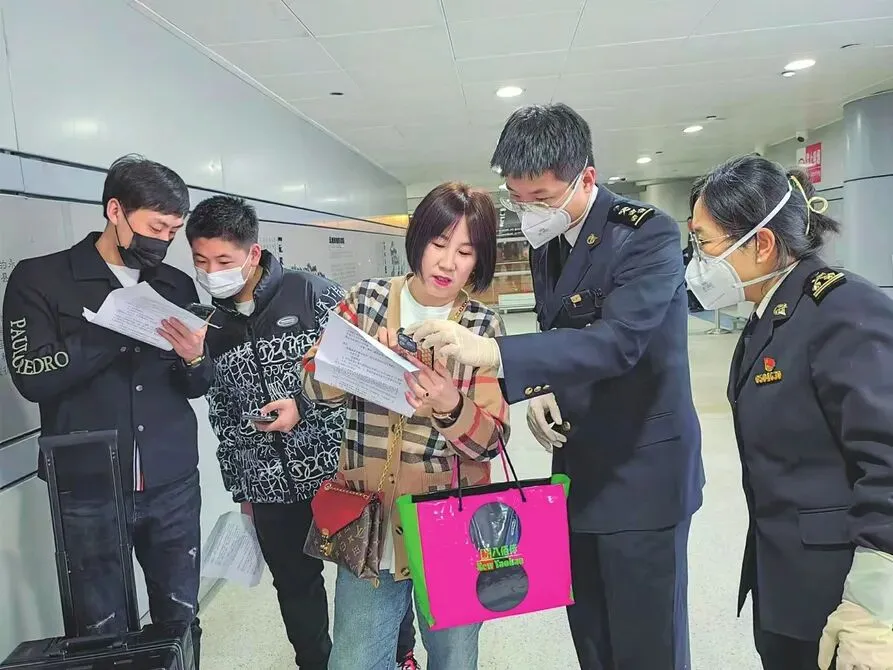 2月3日晚6点,在太原武宿国际机场,太原海关所属太原机场海关旅检科的关员们到达工作岗位。半小时后,从澳门入境的航班落地,旅客走出机舱,在工作人员的指引下走进入境通道。