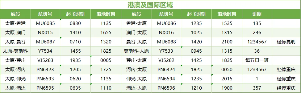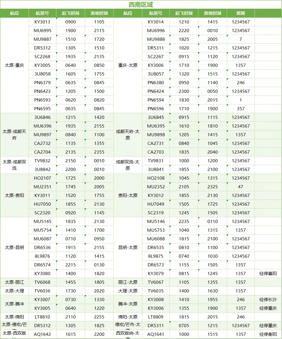 本航季,太原机场重点加密北京、上海、广州、成都、重庆等国内枢纽城市,以及三亚、青岛、厦门等热门旅游城市航班,进一步丰富旅客出行选择。