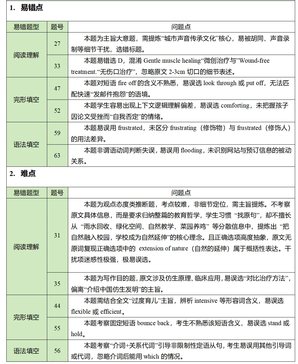 阅读理解:强化细节定位、选项比对、适度推断技巧,解决C篇教育说明文、D篇科技文的选项同义转换问题,避免过度推断;定时训练提升阅读速度与做题稳定性。