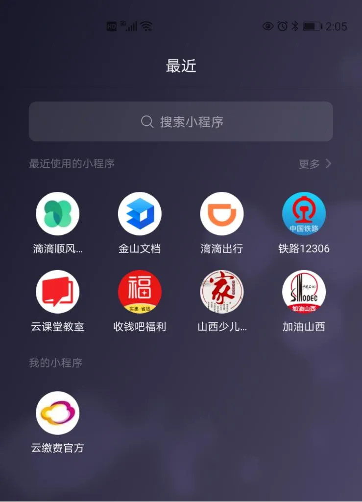 第二步:输入关键字“云缴费”,点击进入小程序“云缴费官方”