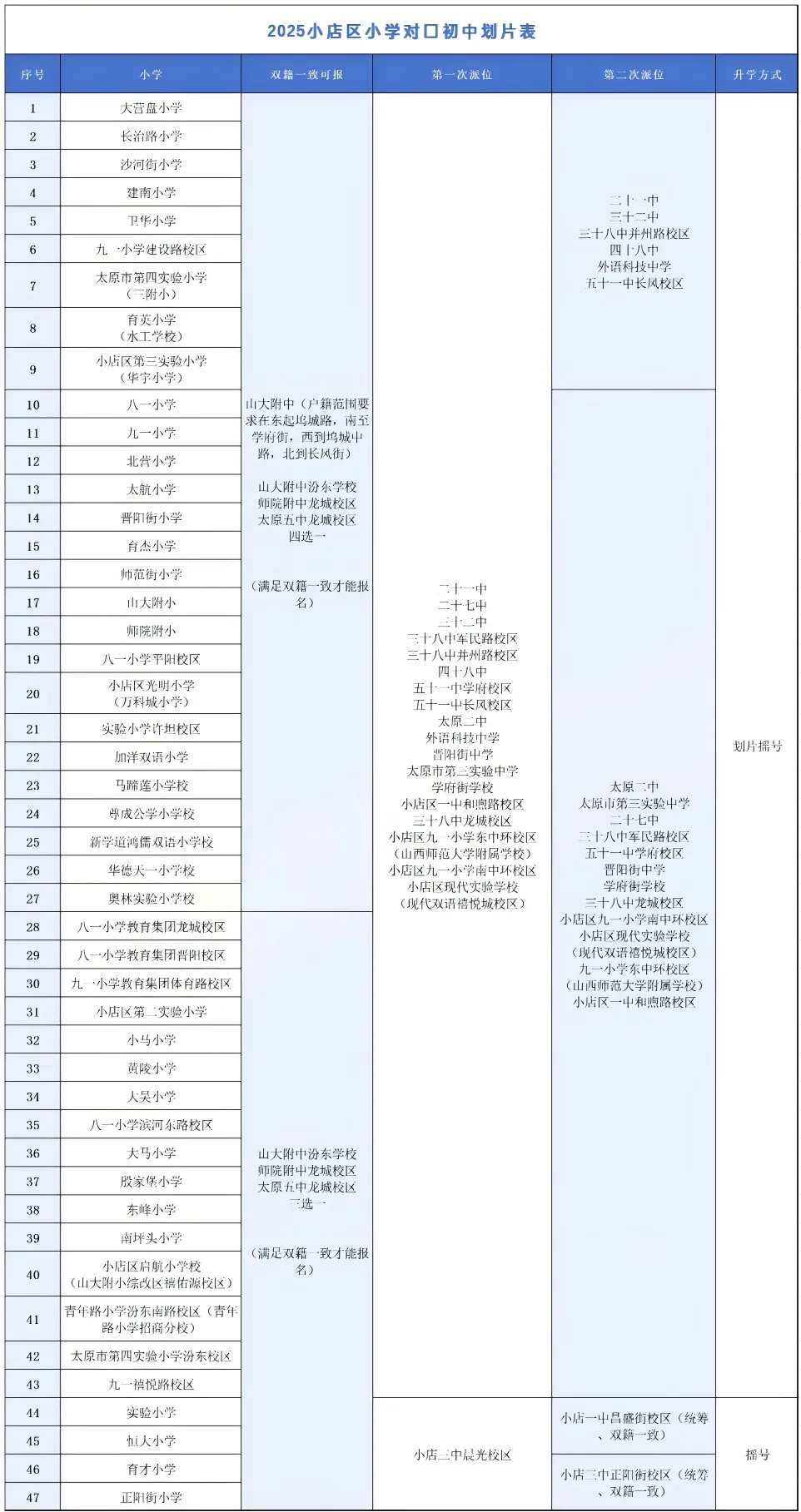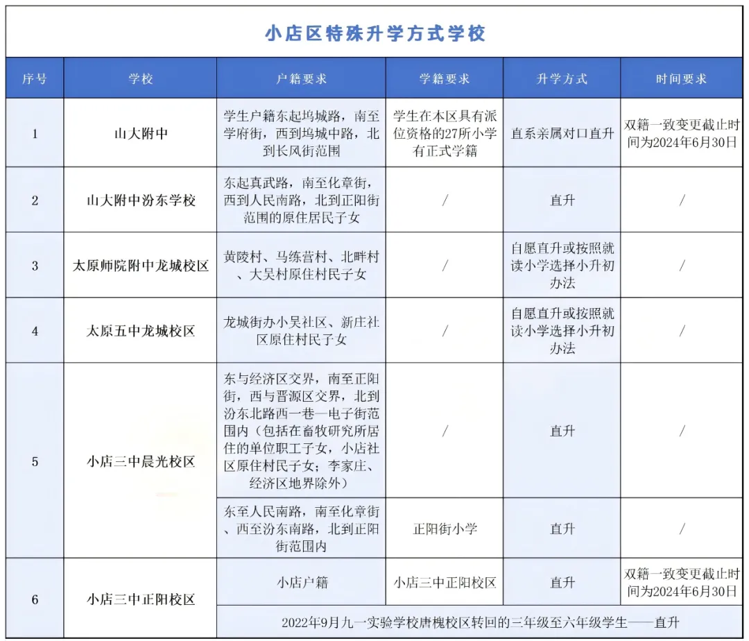 小店区小--初对口升学表