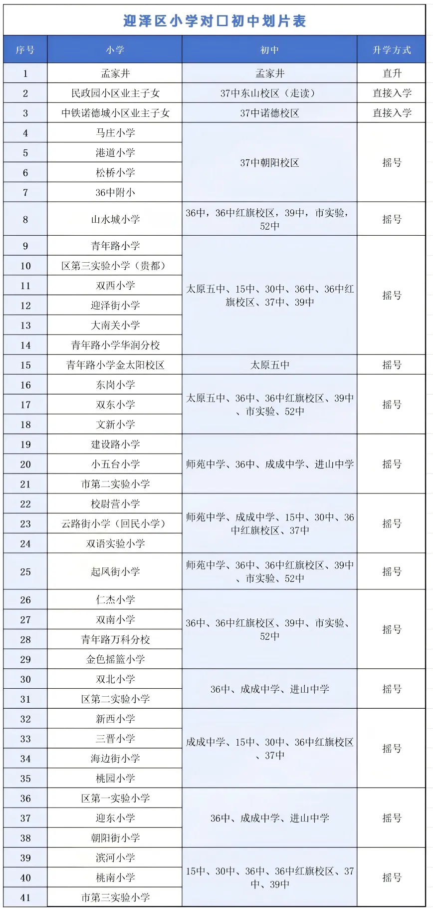 迎泽区小--初对口升学表