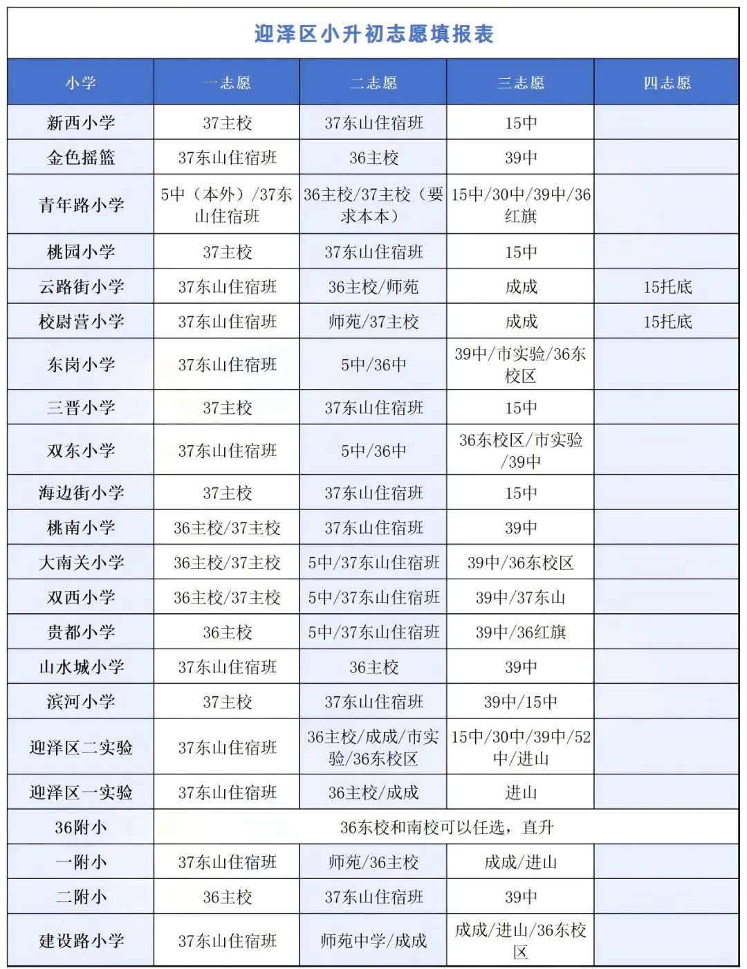 迎泽区小升初志愿填报表