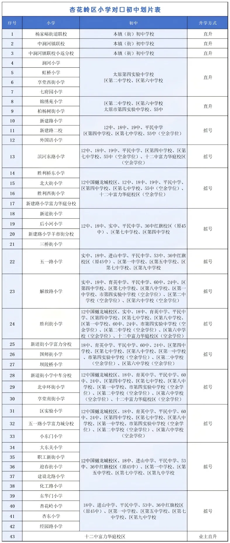 杏花岭区小--初对口升学表