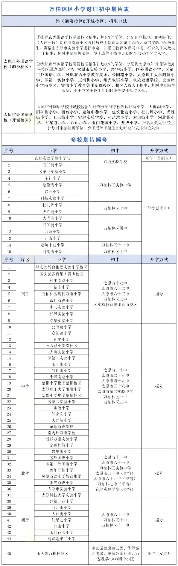 万柏林区小--初对口升学表