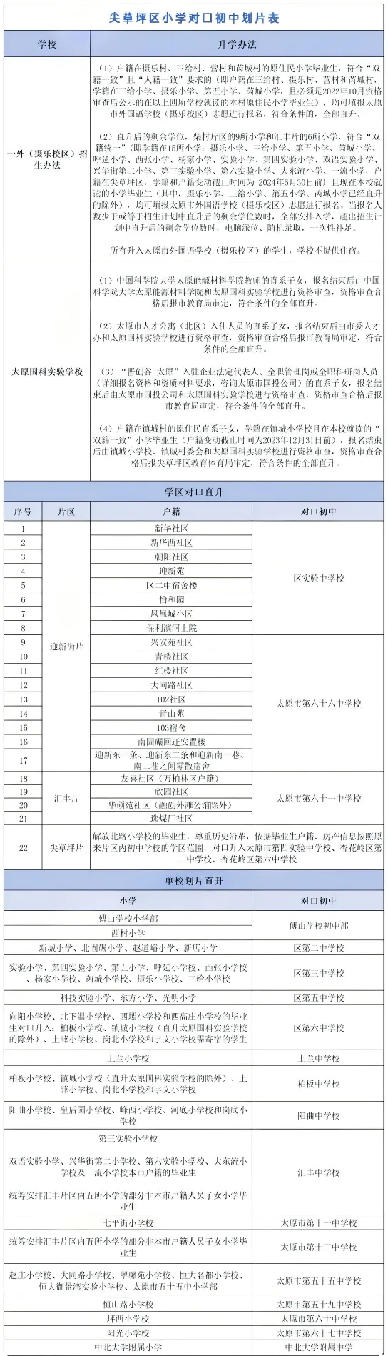 尖草坪区小学对口初中划片表