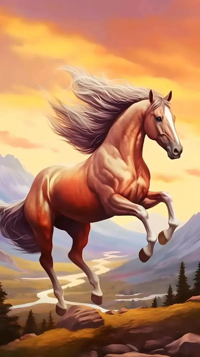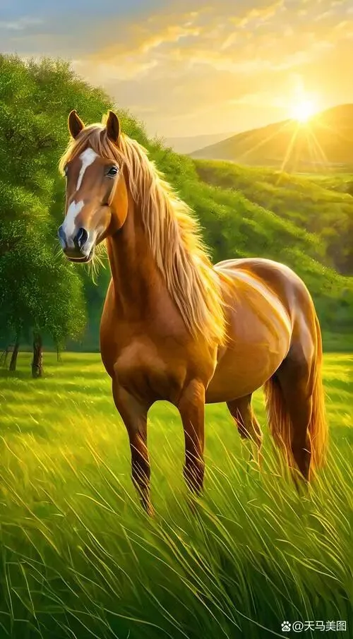 万蹄驰骋大河滩,鬃影携霞民众安。