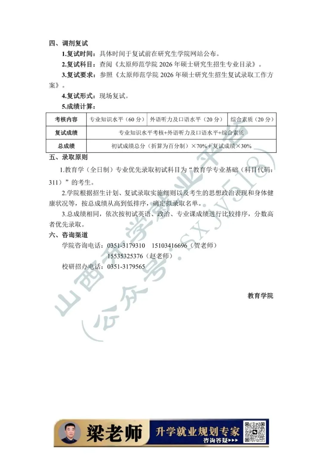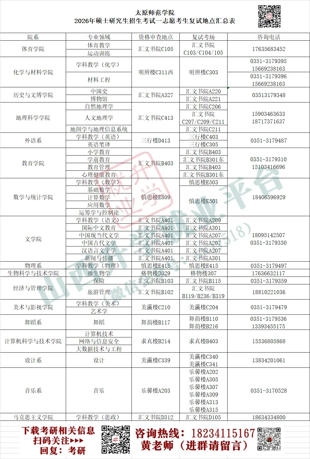 太原师范学院2026年研究生招生一志愿考生复试安排