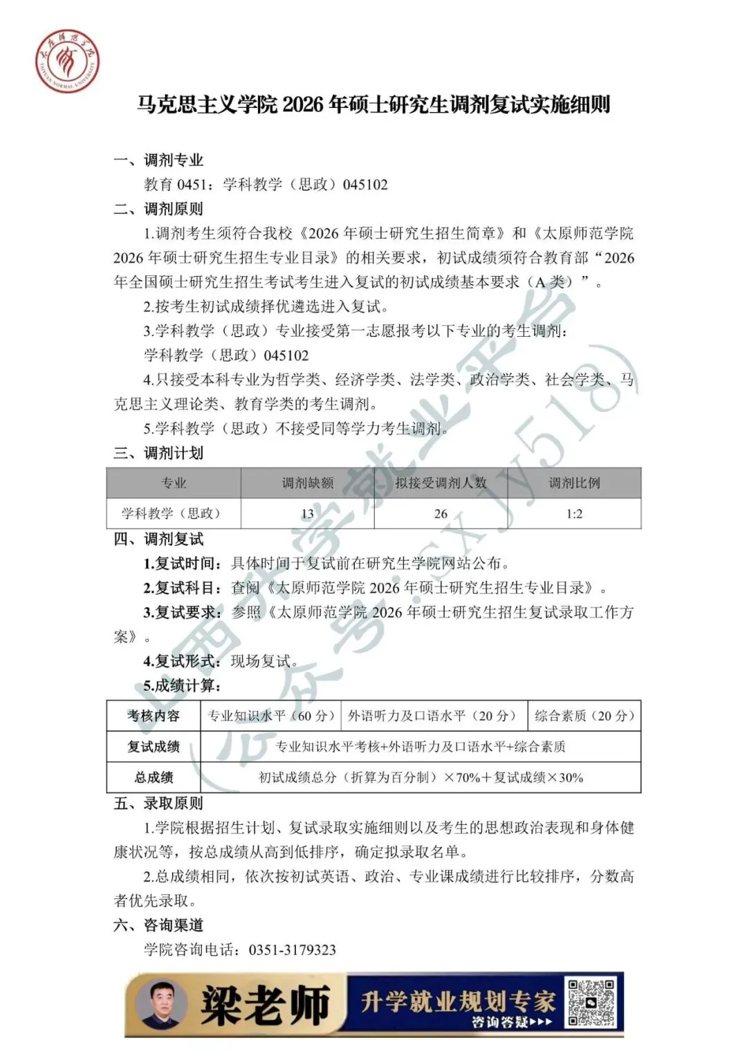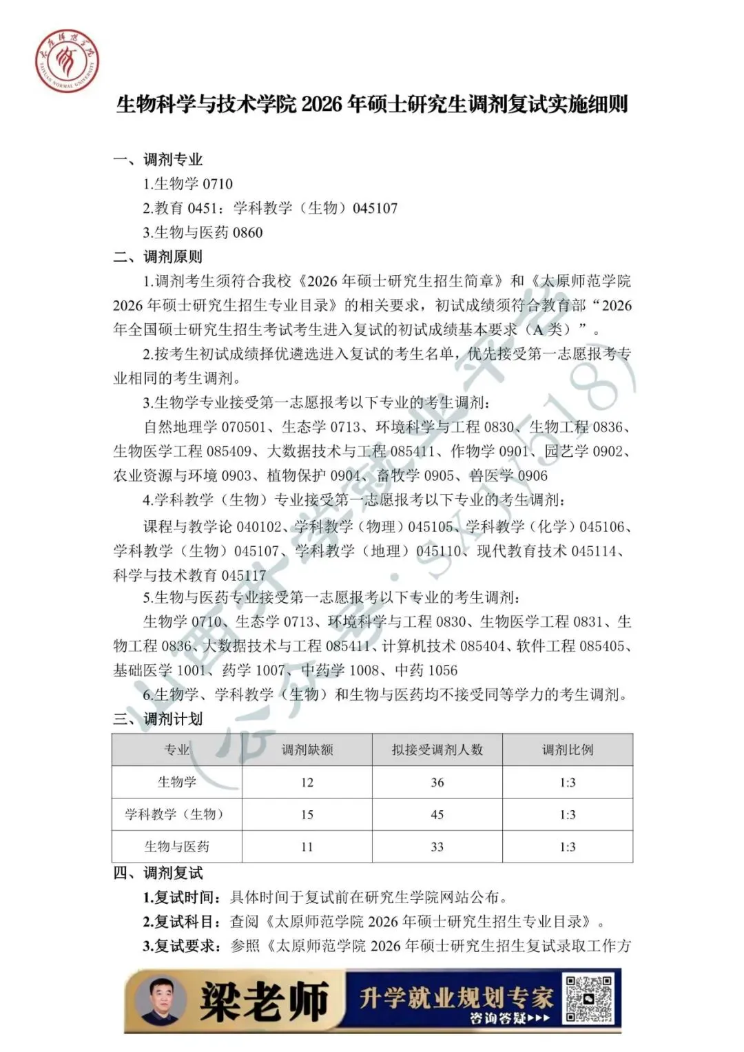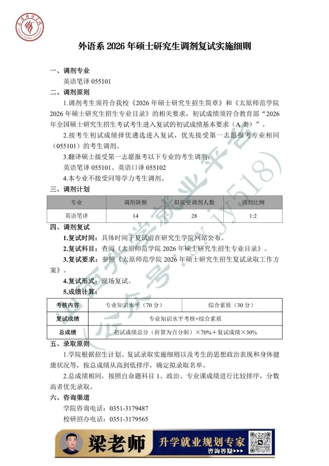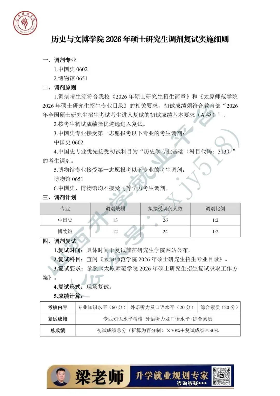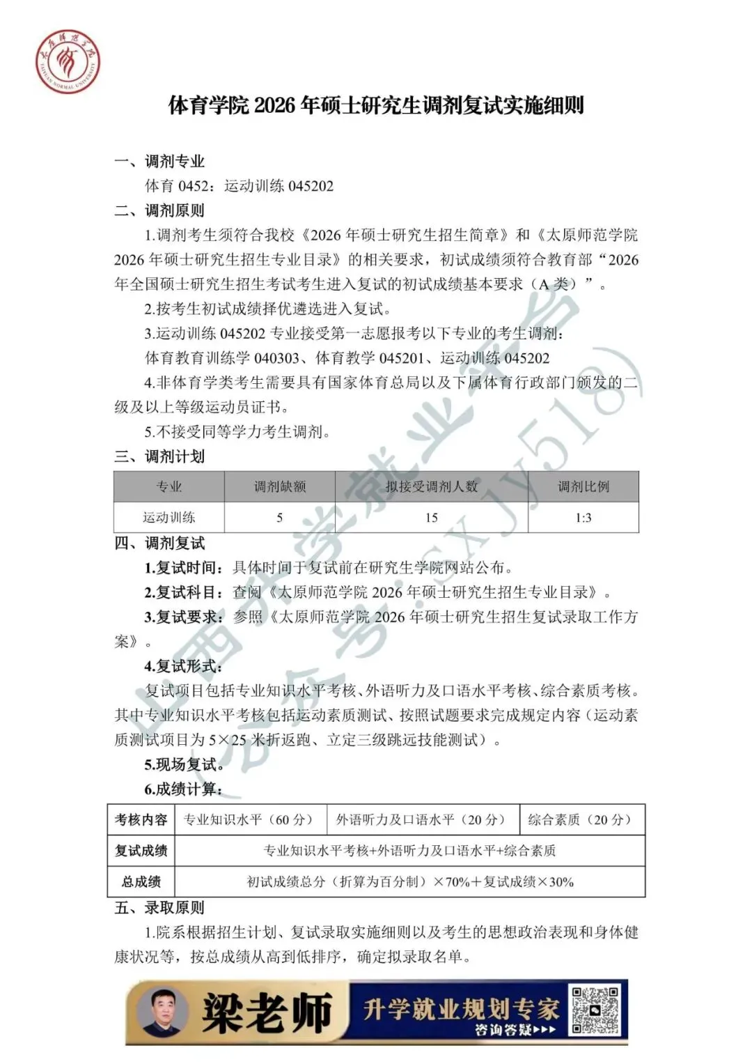 太原师范学院2026年硕士研究生招生调剂工作实施办法