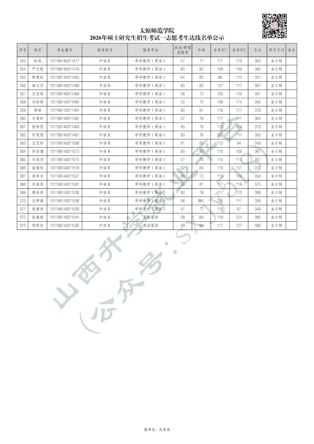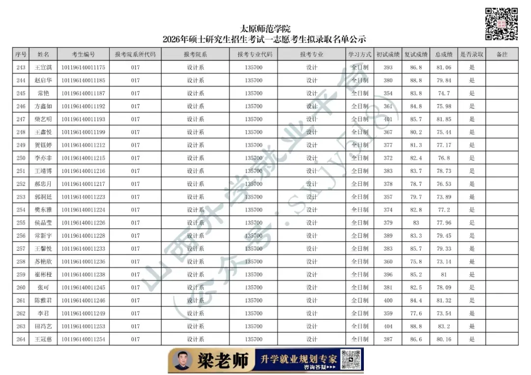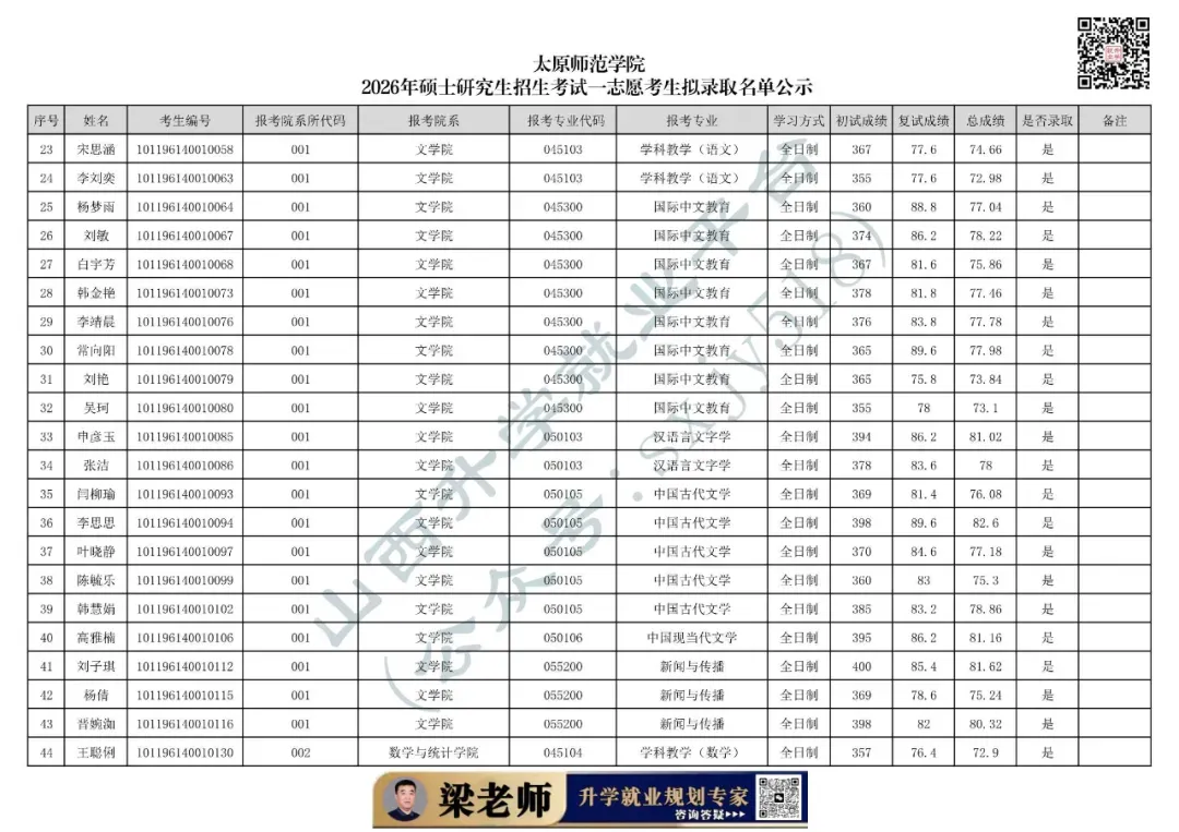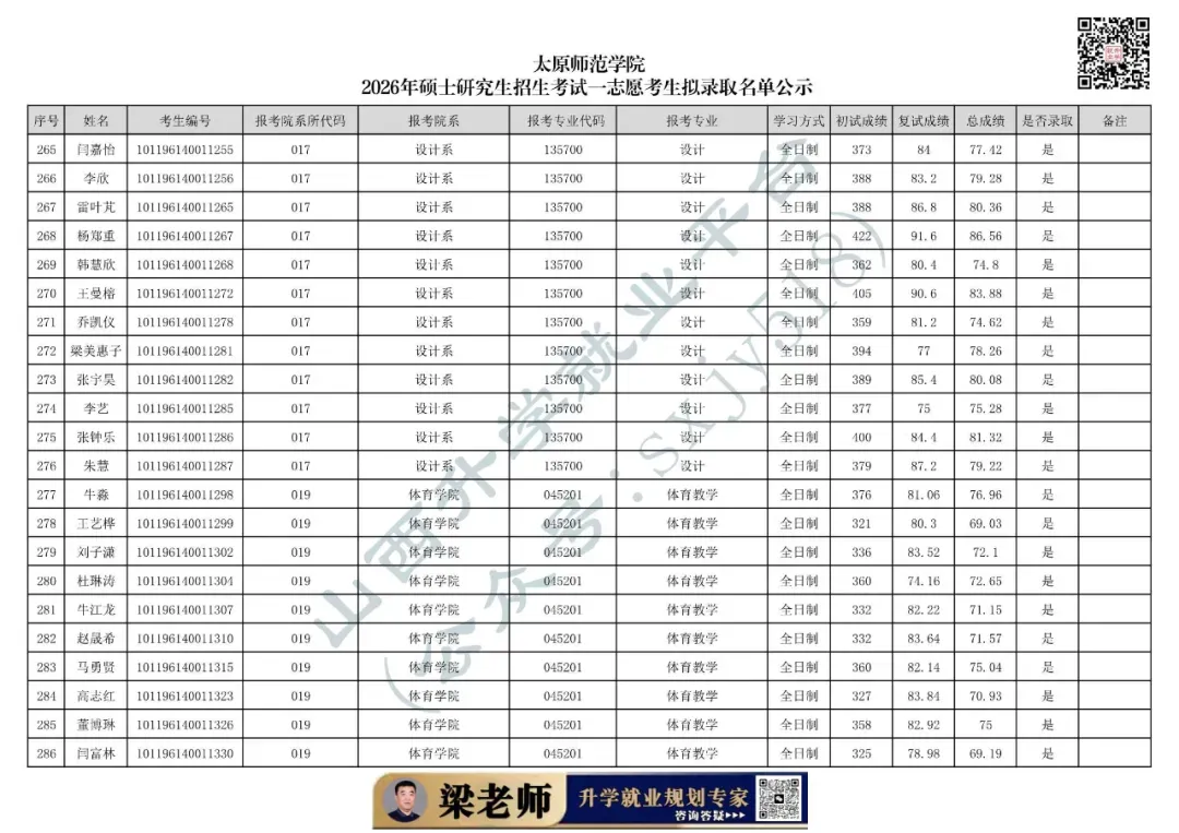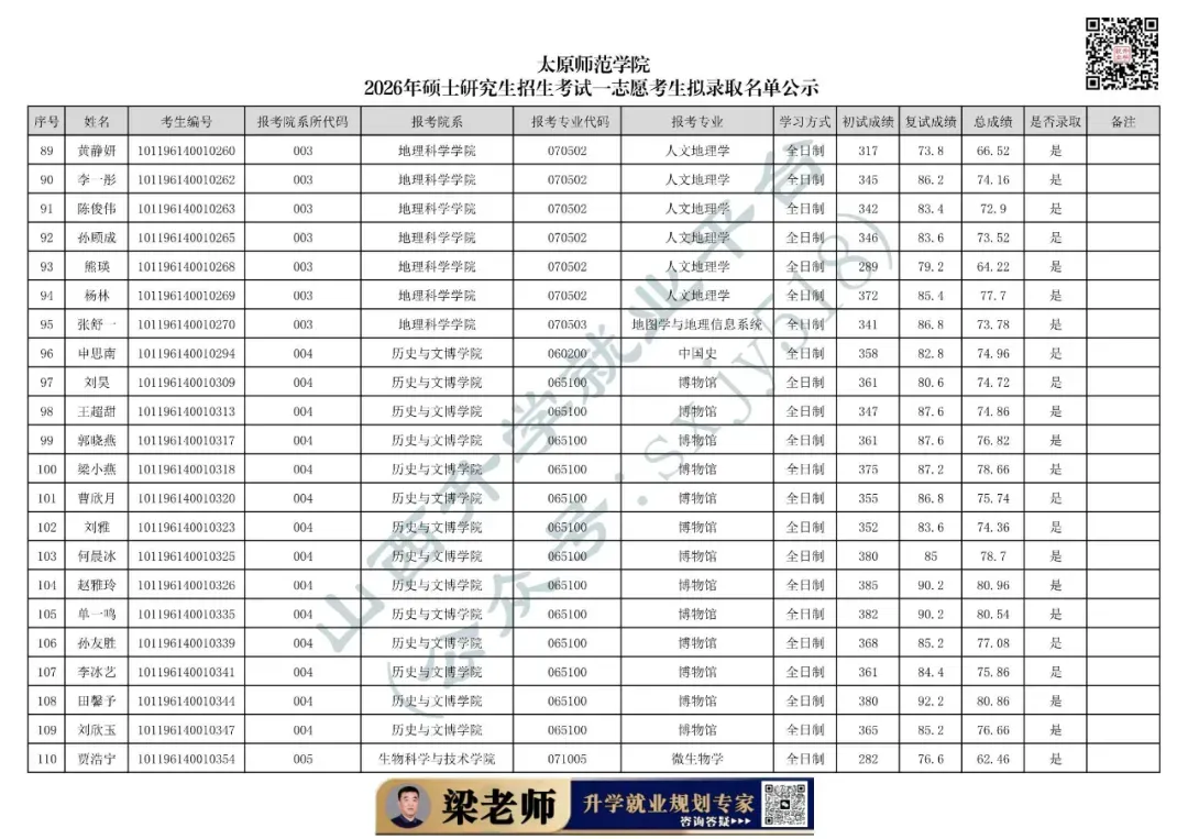 太原师范学院2026年硕士研究生招生考试一志愿考生拟录取名单公示