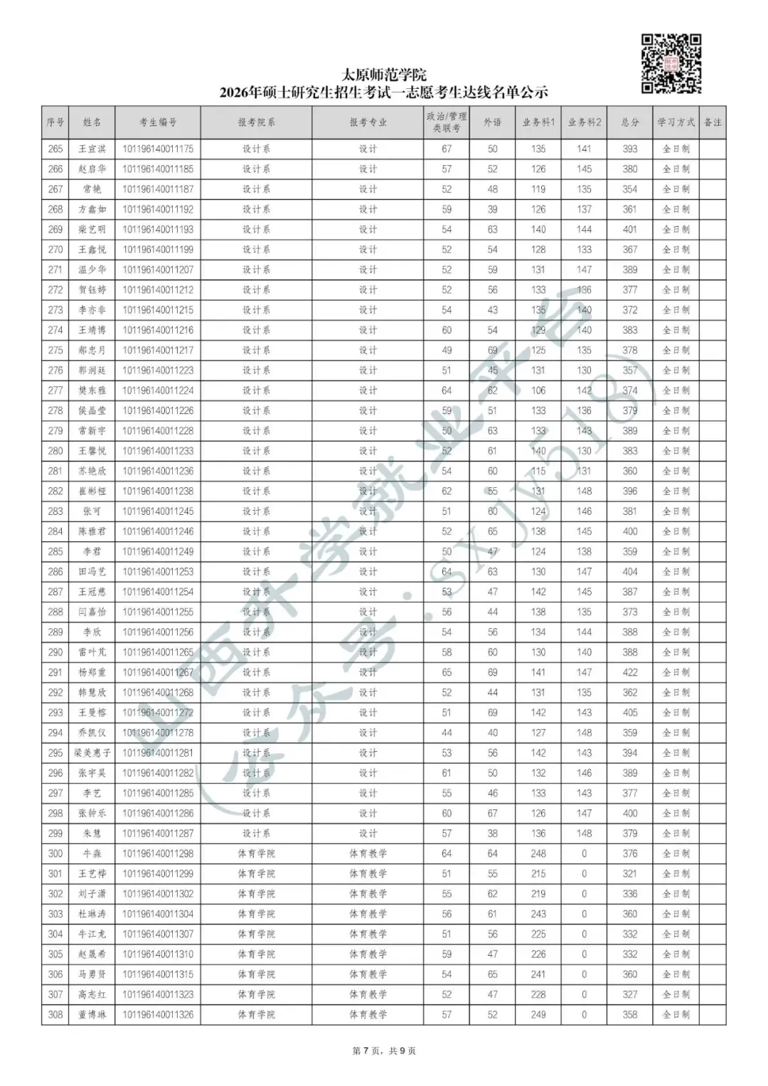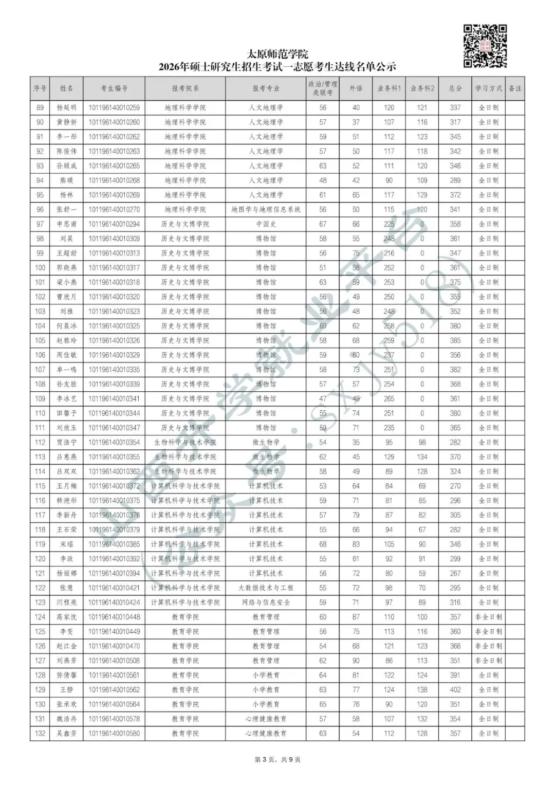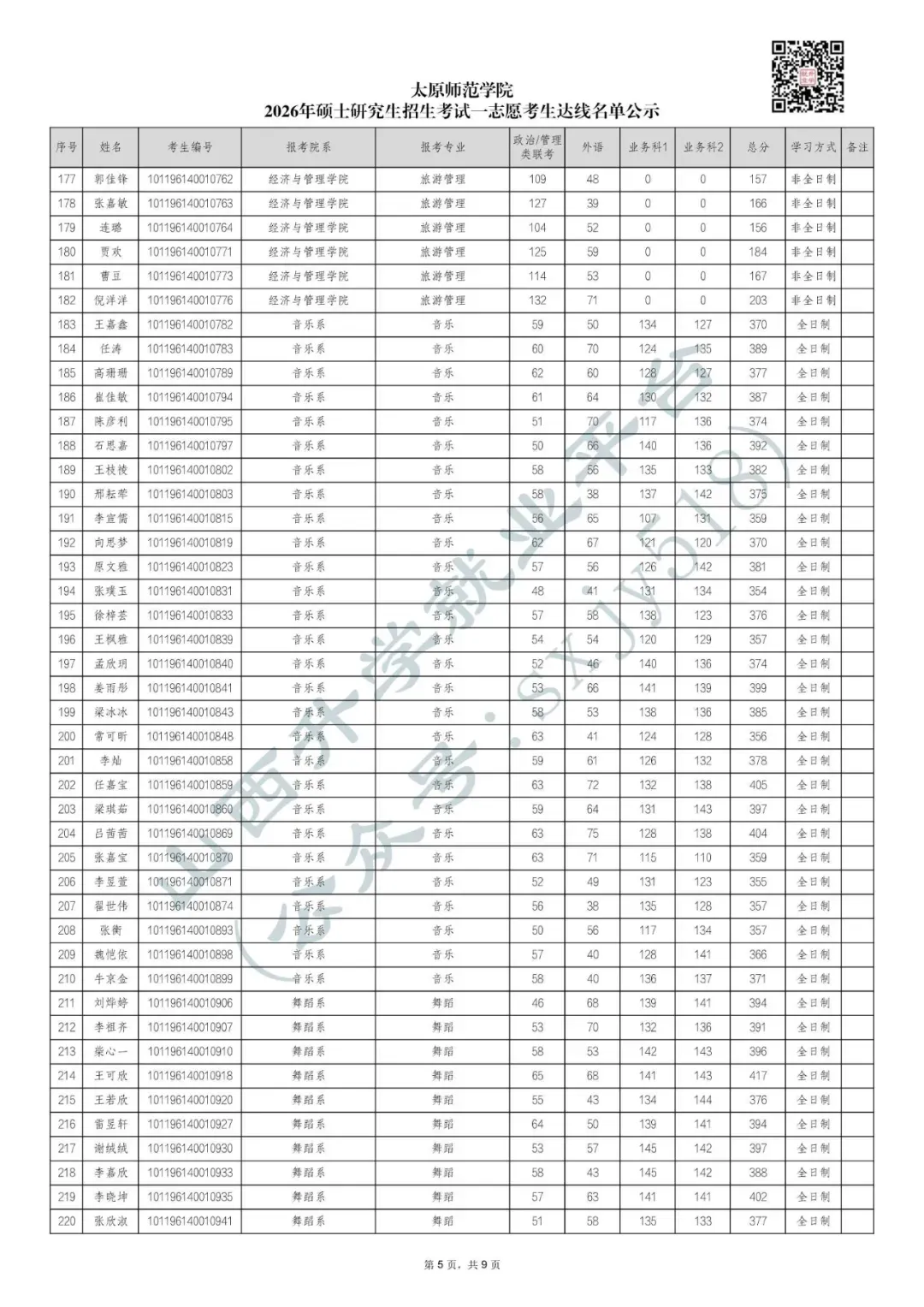 根据教育部《2026年全国硕士研究生招生考试考生进入复试的初试成绩基本要求》和《太原师范学院2026年硕士研究生招生考试一志愿考生进入复试的初试成绩基本要求》,现将符合条件的一志愿复试考生名单予以公示。