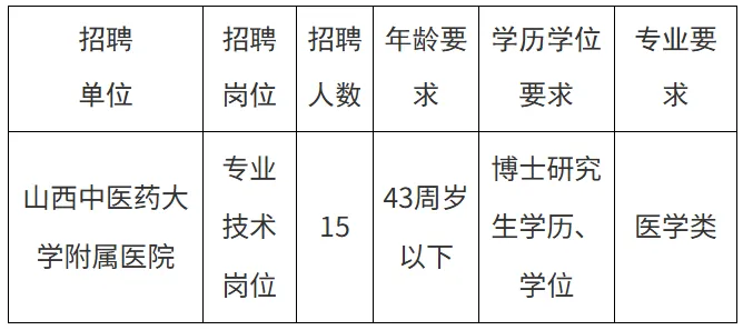 ✅山西中医药大学附属医院(中国中医科学院西苑医院山西医院)2026年公开招聘博士研究生15名