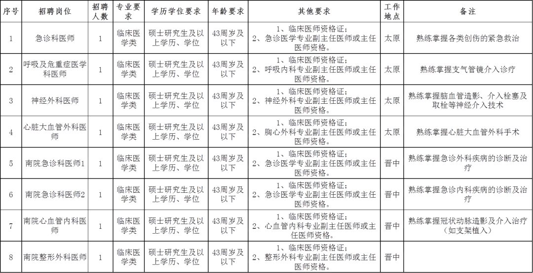 小编提醒:微信搜索并关注【太原本地宝】,在聊天框发私信【医院招聘】获取以上医院招聘公告详情,了解报名时间及附件材料下载入口。✅招聘范围: