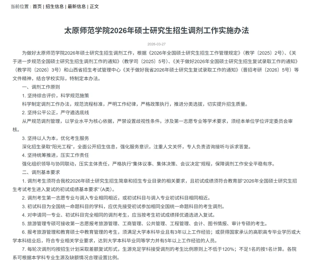 太原师范学院博物馆专业公布调剂名额!