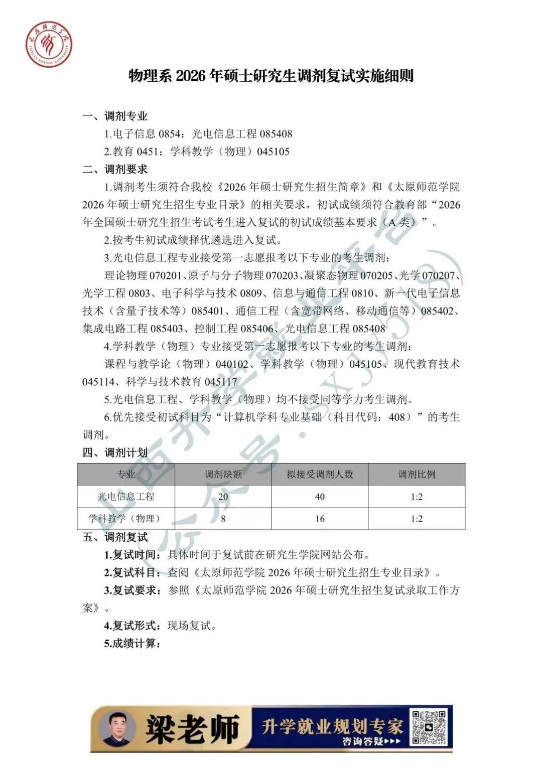太原师范学院2026年硕士研究生招生调剂工作实施办法