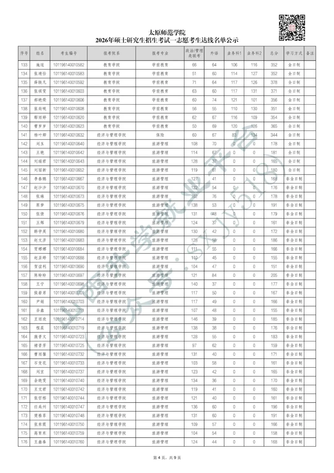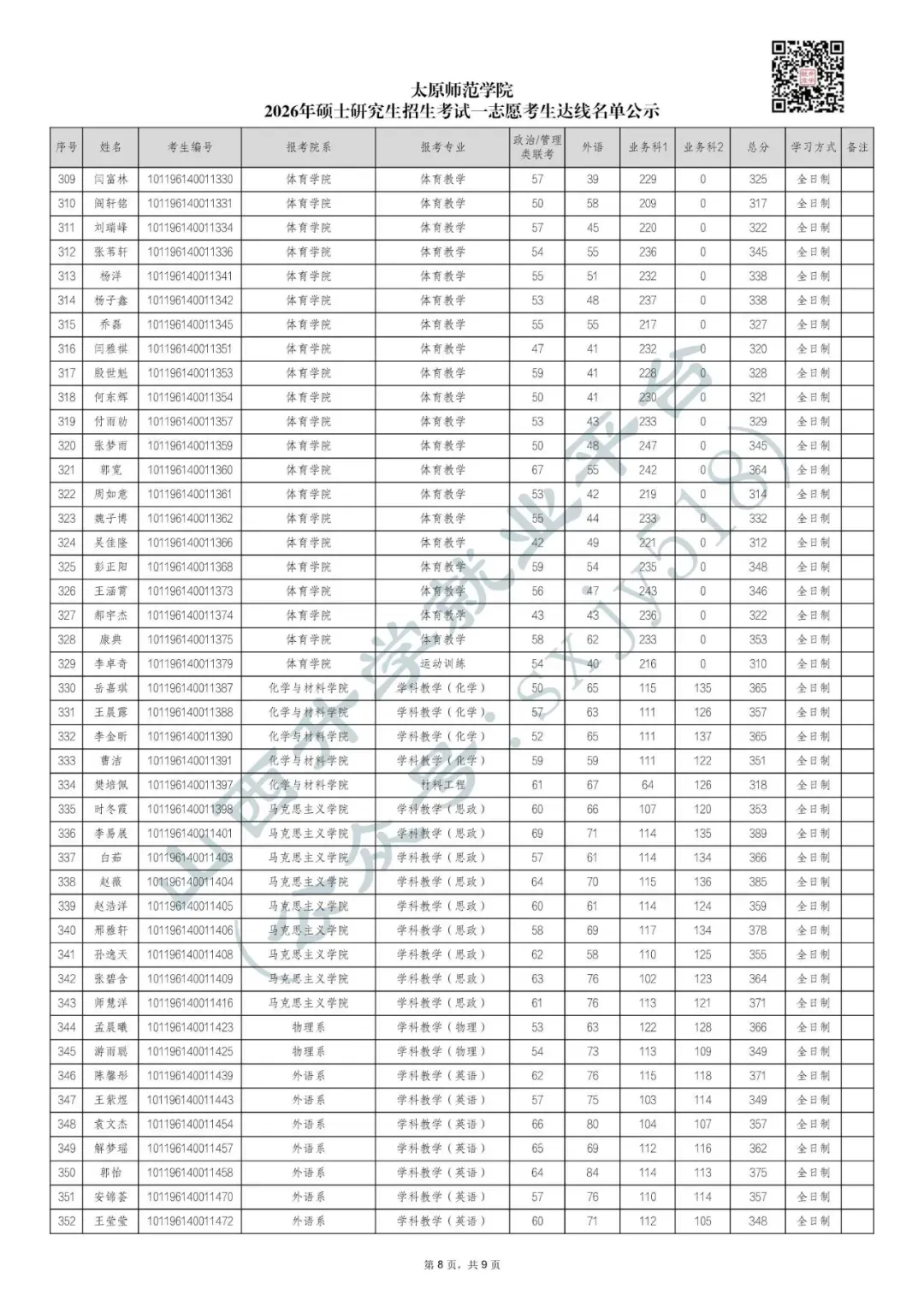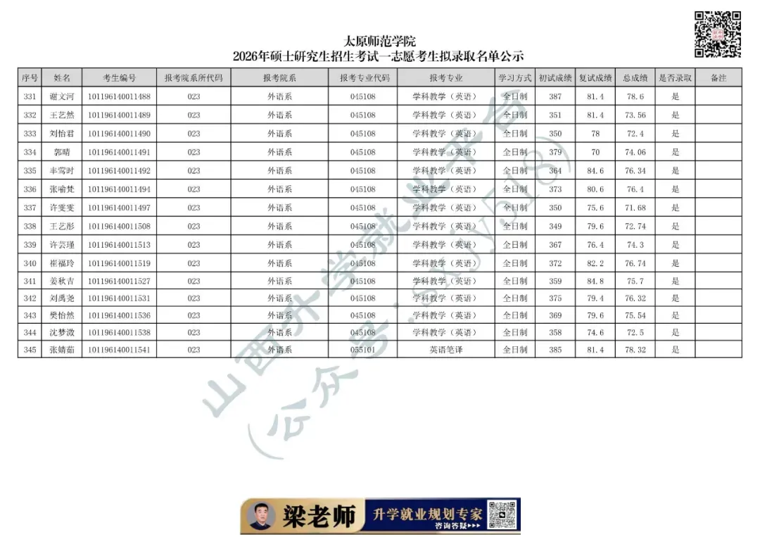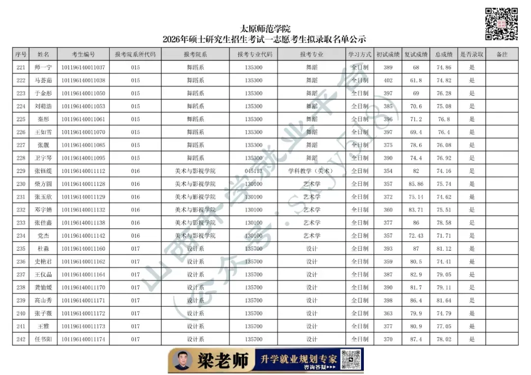 太原师范学院2026年硕士研究生招生考试一志愿考生拟录取名单公示