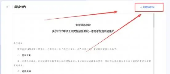 2.复试公告右上角下载复试准考证