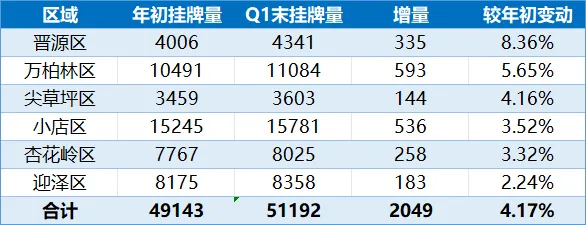 到底是哪些地方的业主在集中抛售呢?我们可以看到晋源区和万柏林区增速是显著高于整体水平。