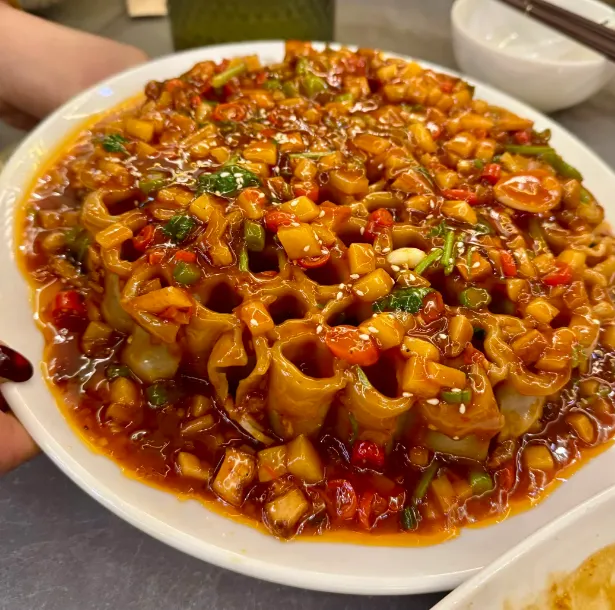 在交口吃饭,别想着猎奇,想着暖胃就对了。早上适合来一碗羊杂汤,汤面一层薄油,香但不腻,喝下去,胃先热起来,人也醒了。旁边配个油糕或者刚出笼的包子,外皮软,里面顶饱,山里早晨那点凉意,基本就散了。